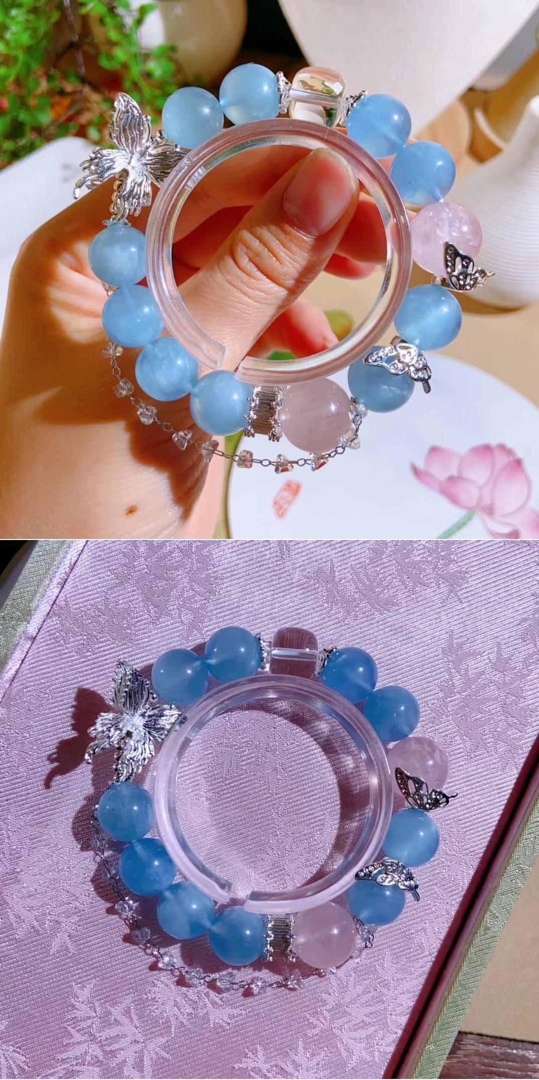 Pulsera de Aguamarina Natural con Cuarzo Rosa Natural y Cristal Blanco Moda Simple Joyería Pequeña Fresca Venta al por Mayor de Pulseras