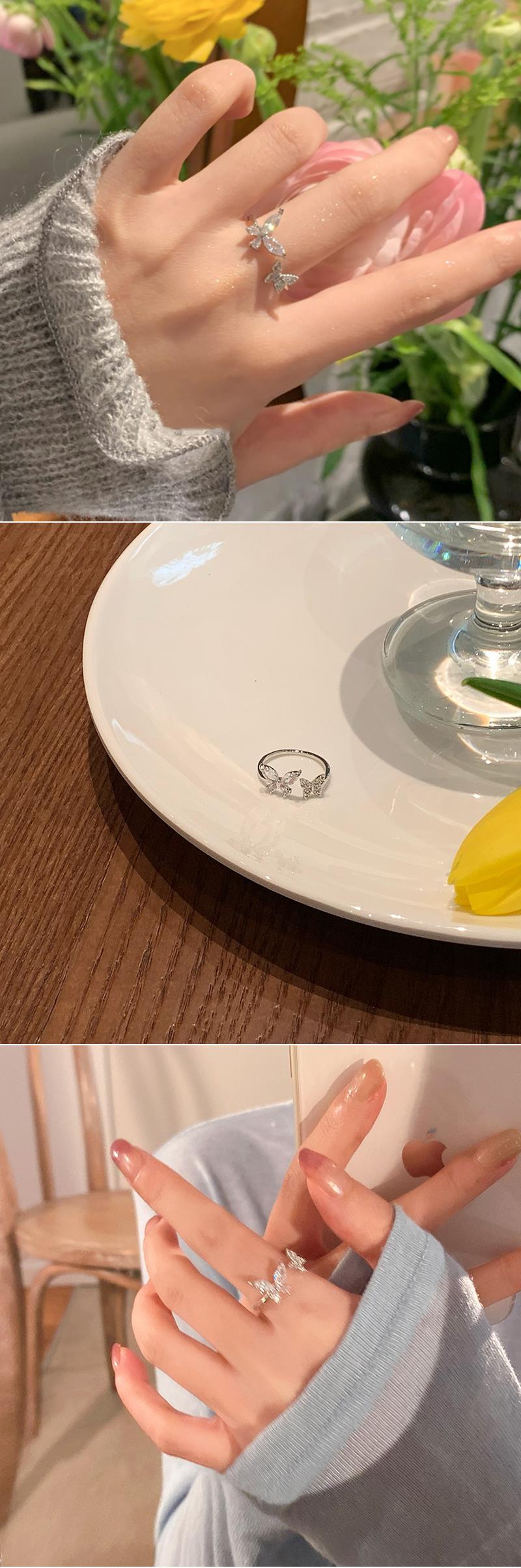 Butterfly zircon ring, White open ring, Black open ring, Single layer flower fairy, Double layer flower fairy,...