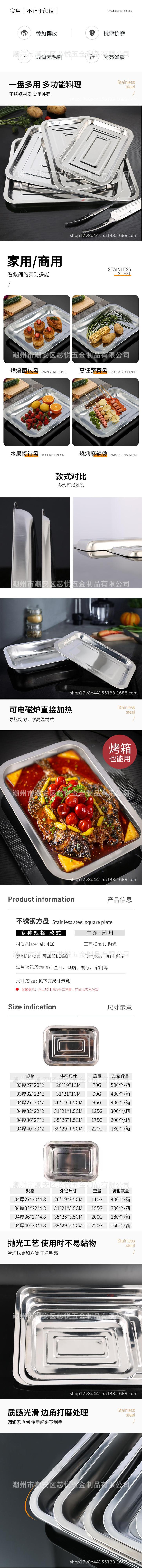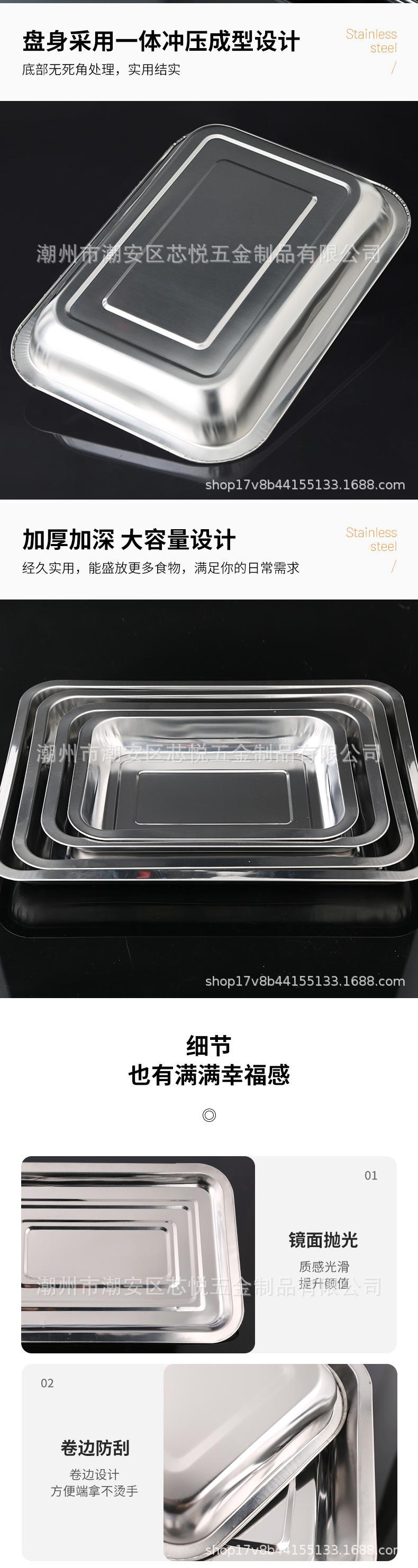 Plato Cuadrado de Acero Inoxidable Chaozhou para Exterior Comercial, Plato para Barbacoa de Pescado a la Parrilla, Hotel, Bandeja Rectangular de Fondo Plano al por Mayor