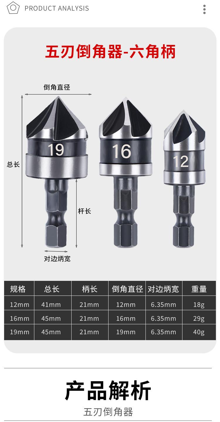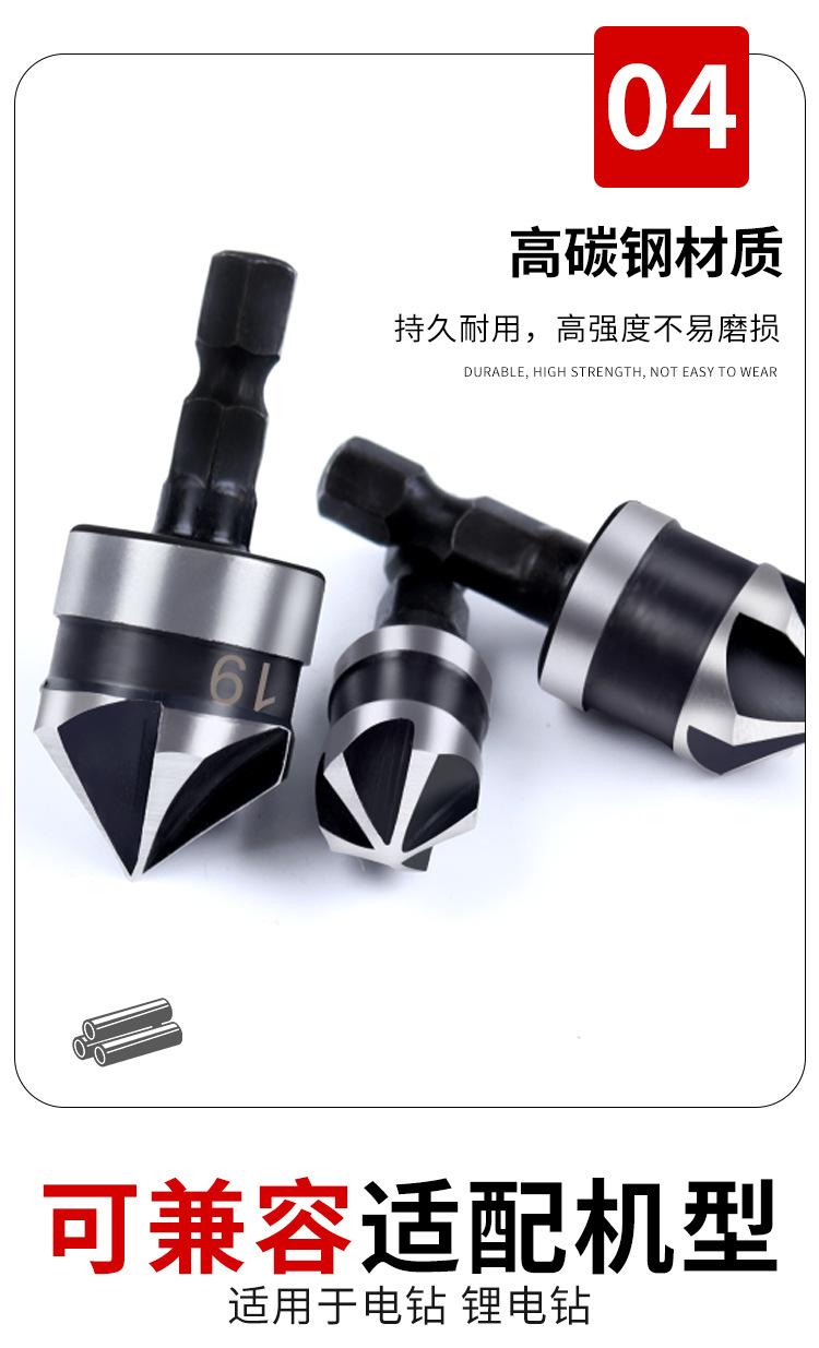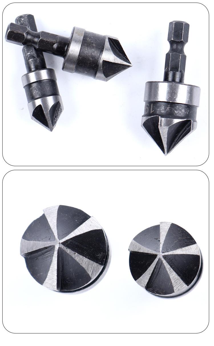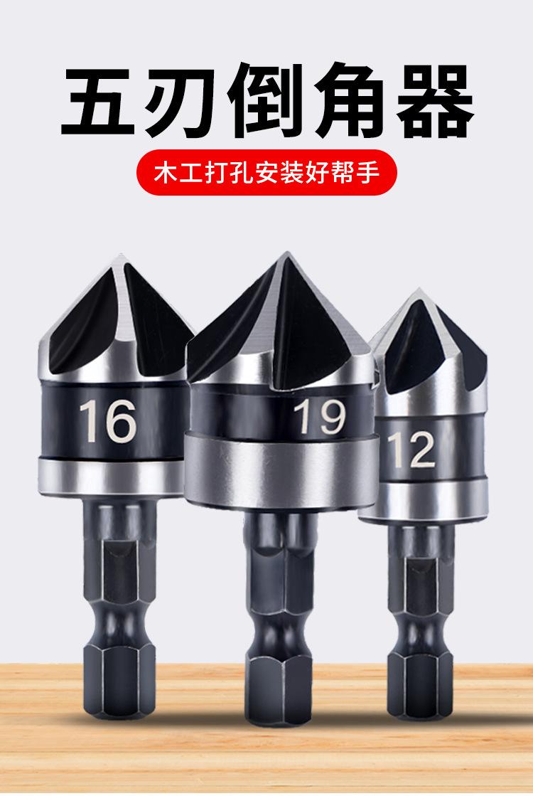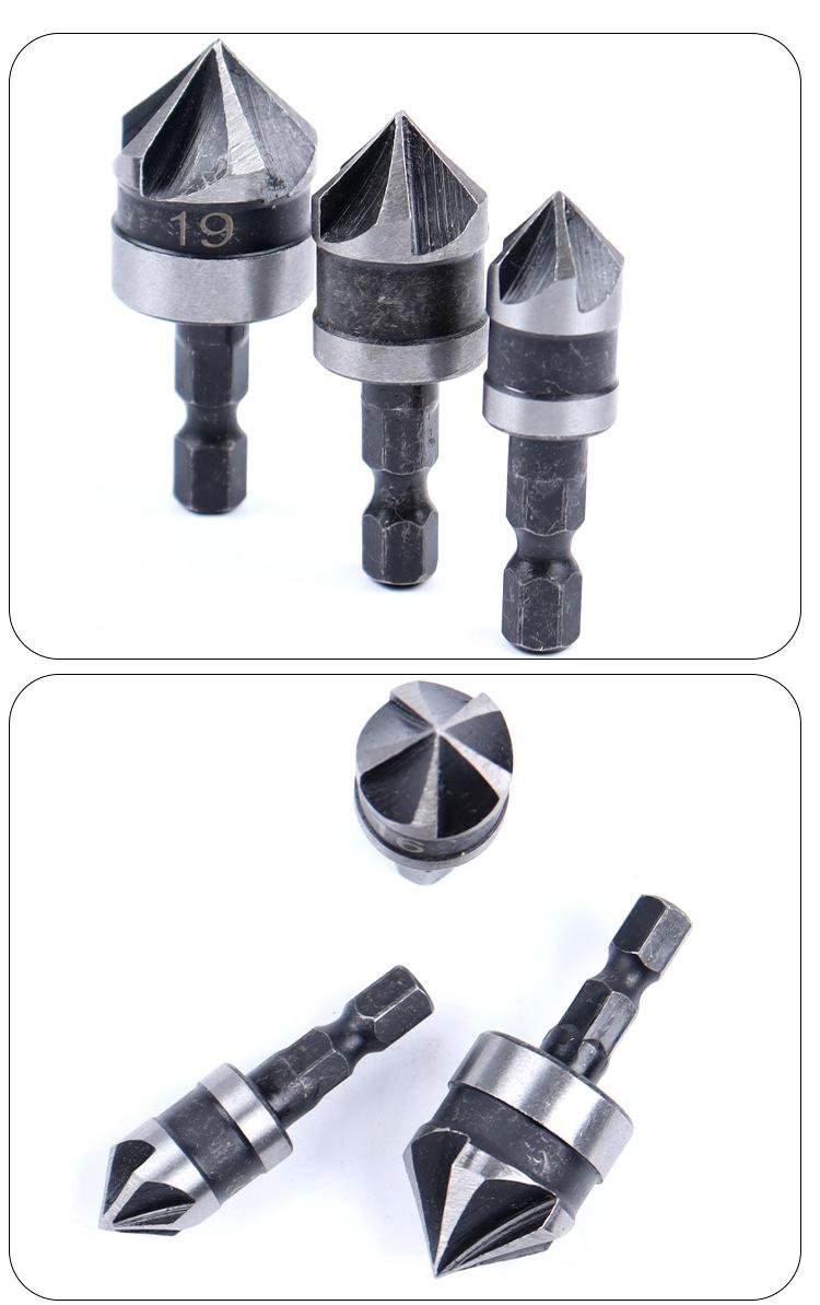 Juego de tres piezas de herramienta de chaflanado de cinco hojas con vástago hexagonal de acero al carbono transfronterizo de 90 grados 12 mm 19 Negro Broca avellanadora Abridor de agujeros para carpintería
