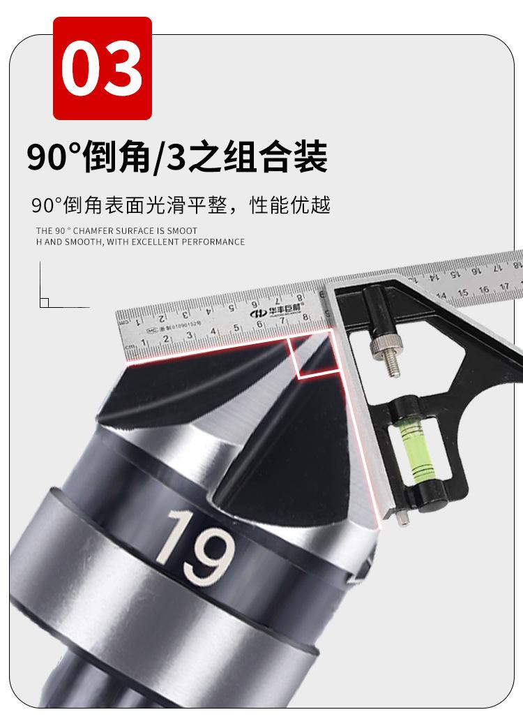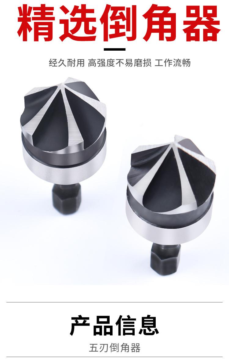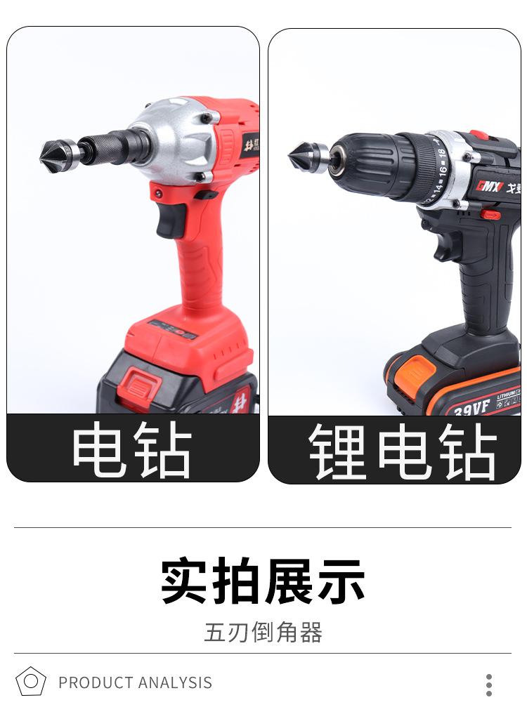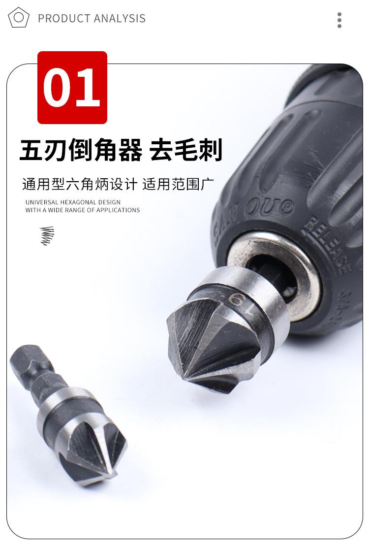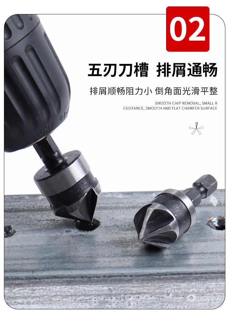 Juego de tres piezas de herramienta de chaflanado de cinco hojas con vástago hexagonal de acero al carbono transfronterizo de 90 grados 12 mm 19 Negro Broca avellanadora Abridor de agujeros para carpintería
