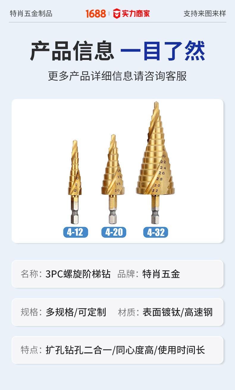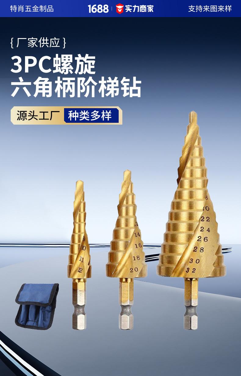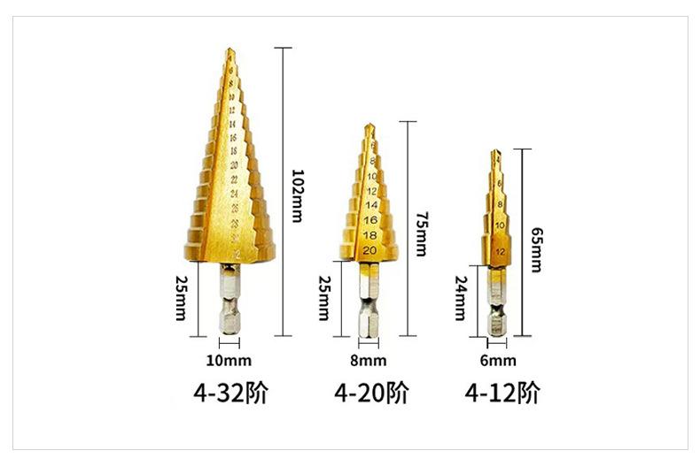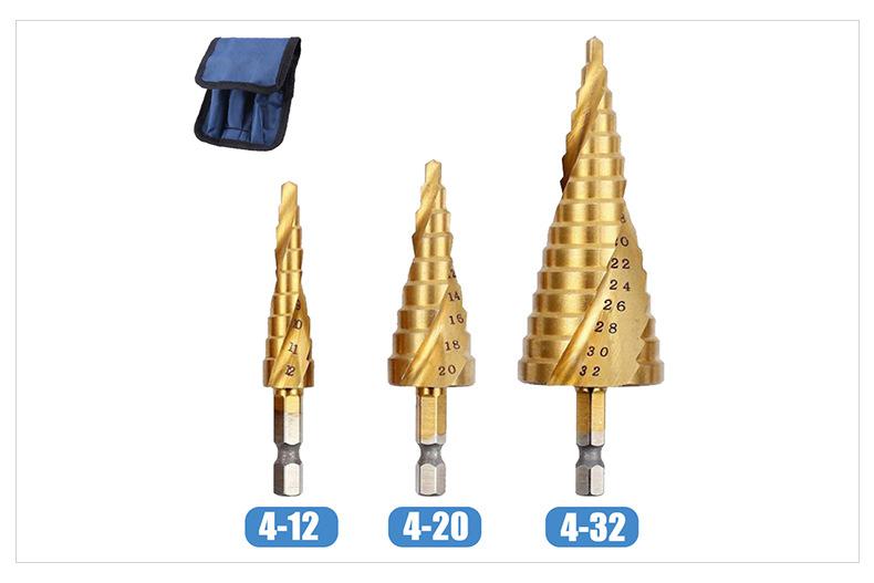 Vástago Hexagonal 4241 Broca Pagoda Espiral Acero de Alta Velocidad Expansión Broca Escalonada Juego de Herramientas de Perforación para Taladro Eléctrico de Mano Paso