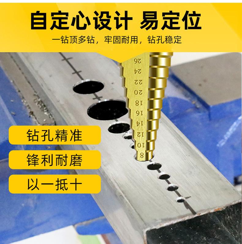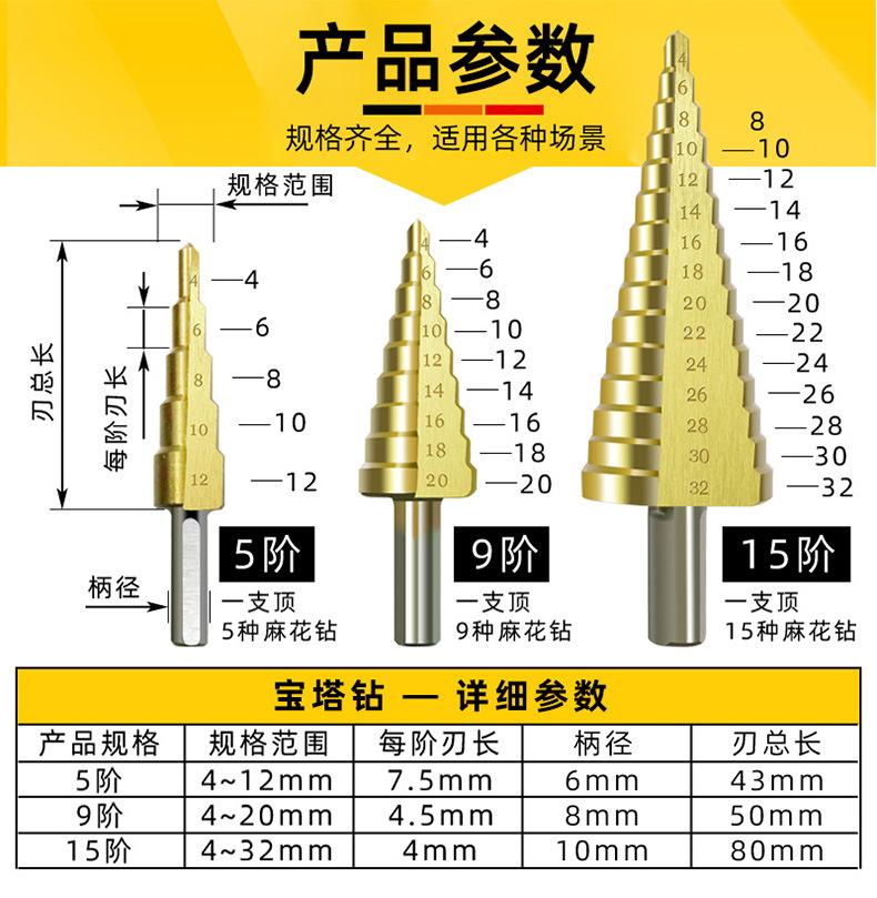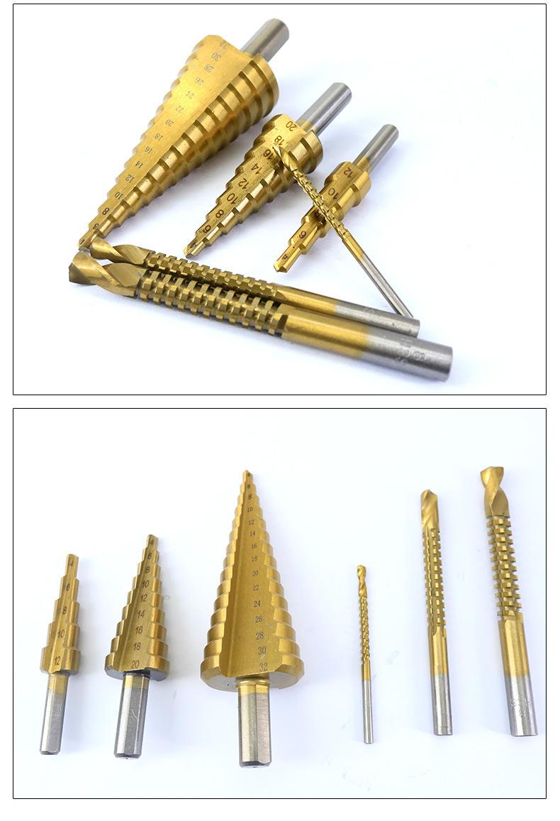 Juego de Brocas Helicoidales en Caja Broca Pagoda Broca Espiral Tipo Torre Escalera Ensanchador de Agujeros Ranura Dentada Broca Helicoidal