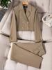 Caqui Chaqueta de Traje Corta de Manga Larga con Cuello Pequeño Pantalón para Mujer Traje de Dos Piezas Moda Elegante Doble Botonadura Elegante Trendy
