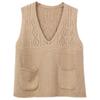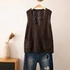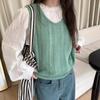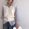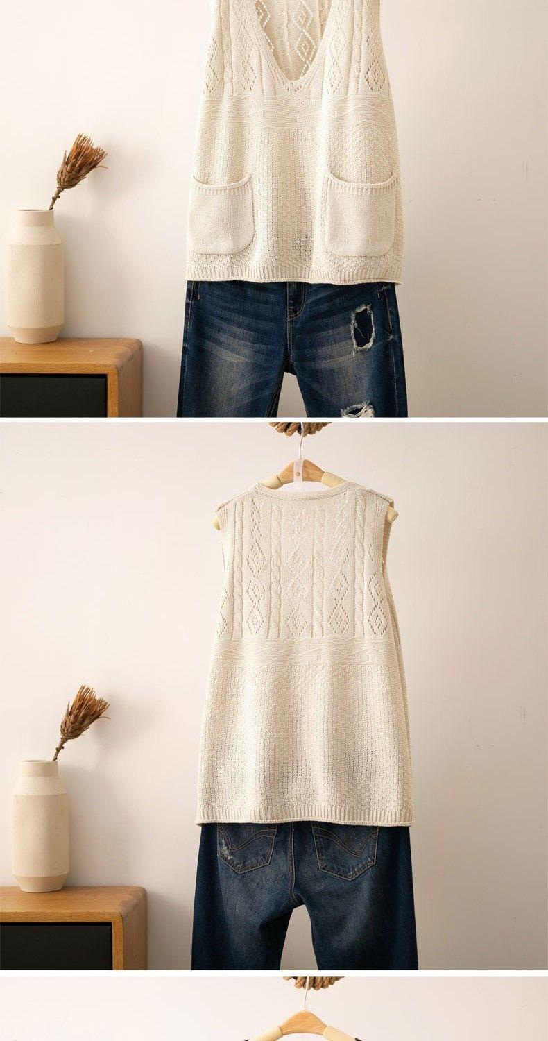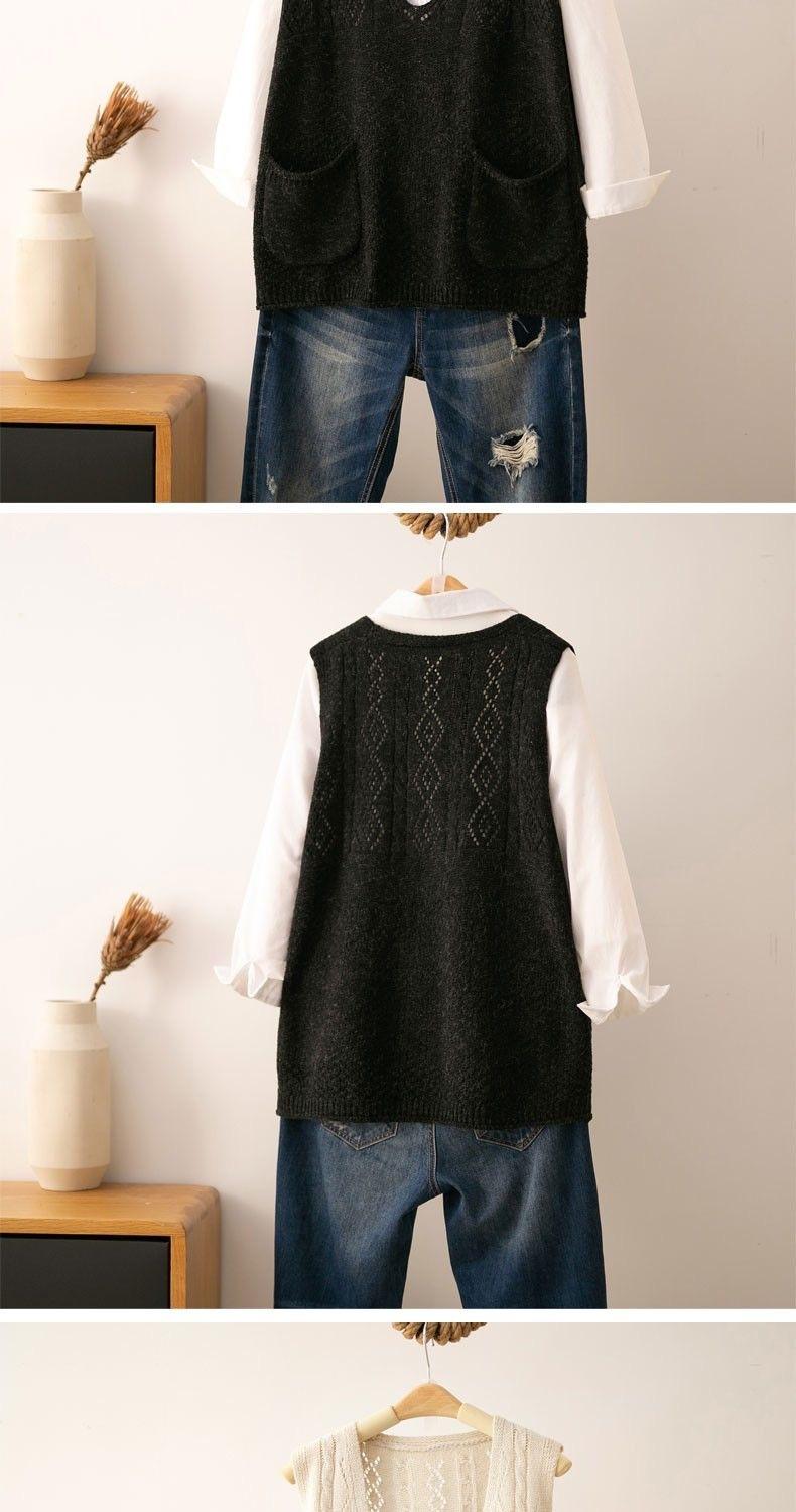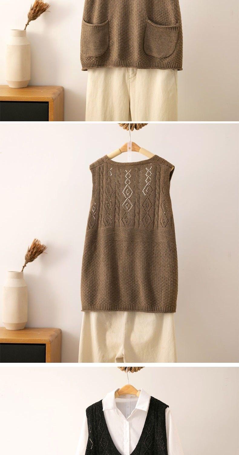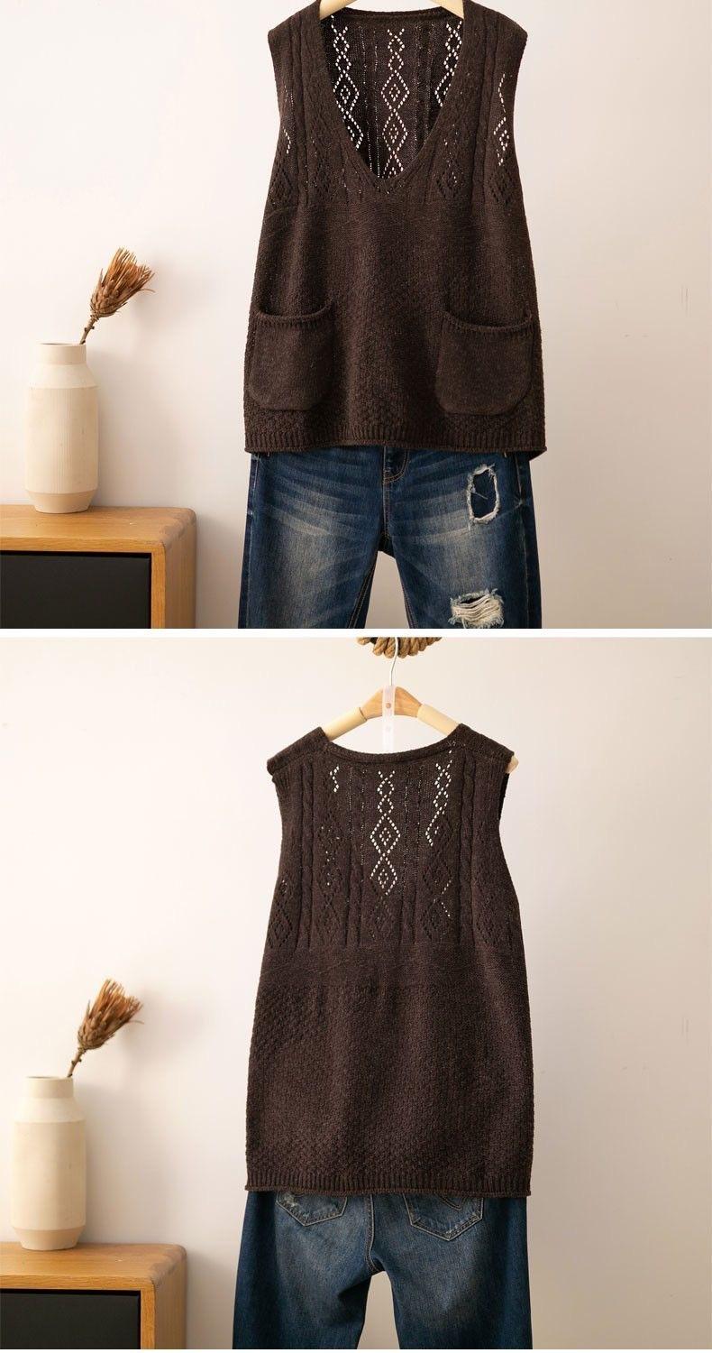 Otoño 2021 Nuevo Chaleco Suéter con Cuello en V para Mujer Suéter Retro Artístico de Punto para Exterior Chaleco Holgado para Mujer