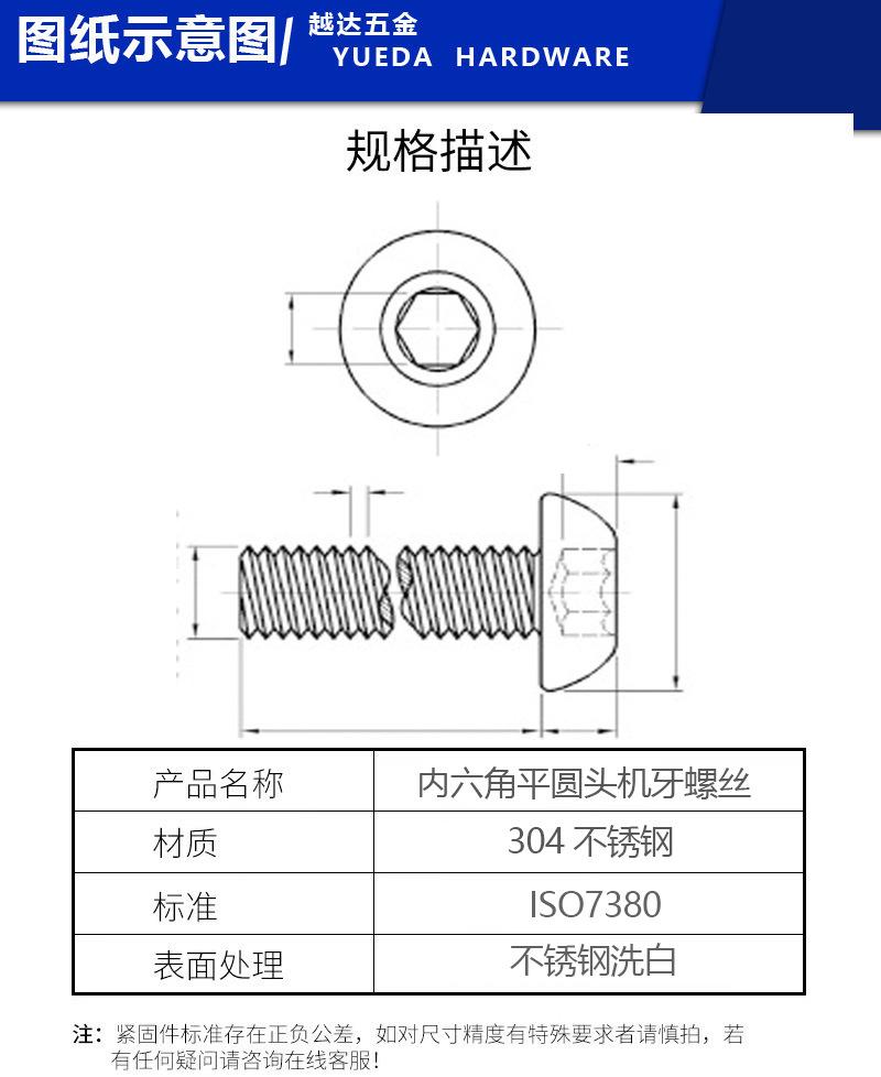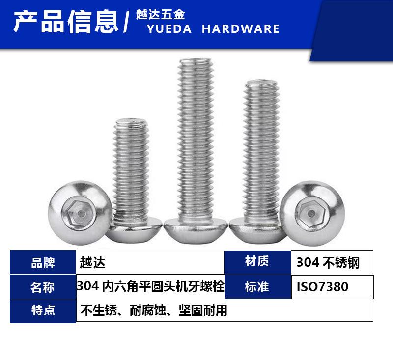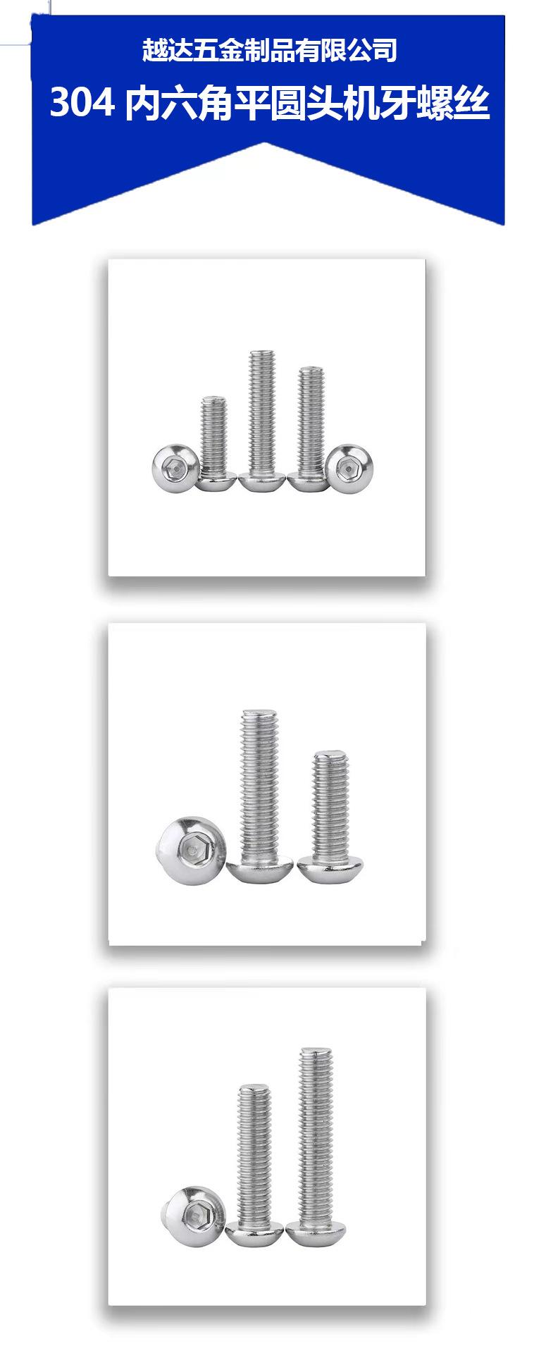Acero Inoxidable 304 Iso7380 Tornillos de Máquina de Cabeza Redonda Plana de Zócalo Hexagonal Tornillos Pernos de Zócalo Hexagonal de Cabeza Redonda M1.4-M3