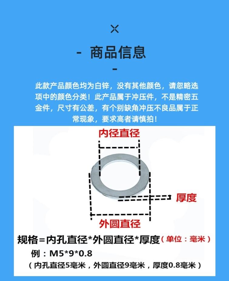 Junta Metálica Plana Galvanizada Junta Plana de Hierro Engrosada Arandela Redonda para Tornillo M345M6M8M12M16