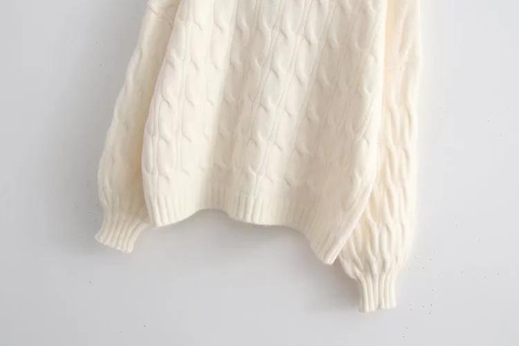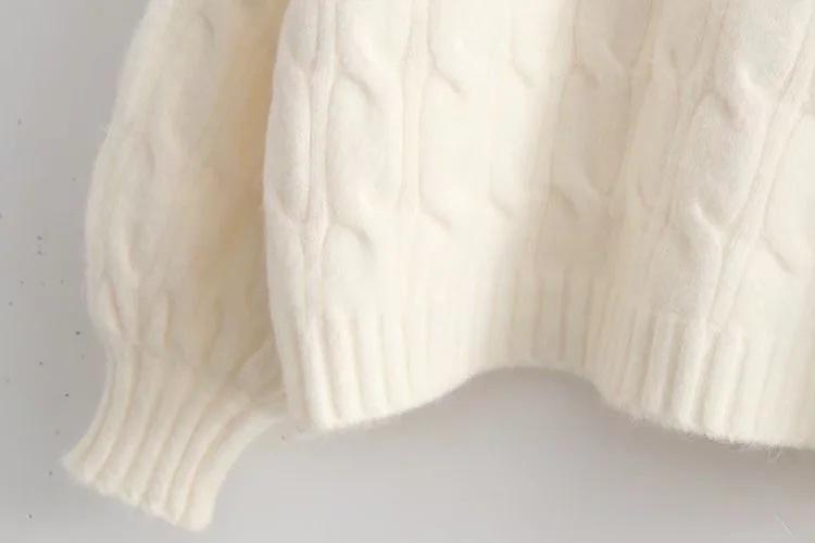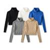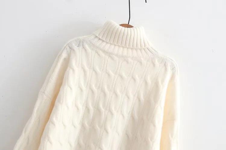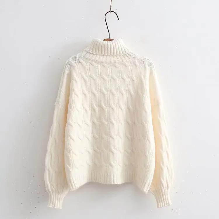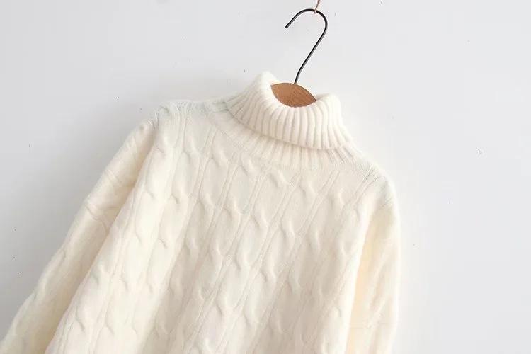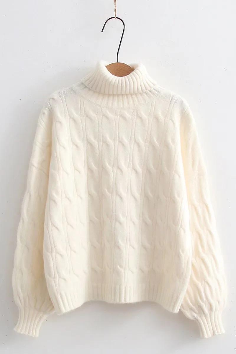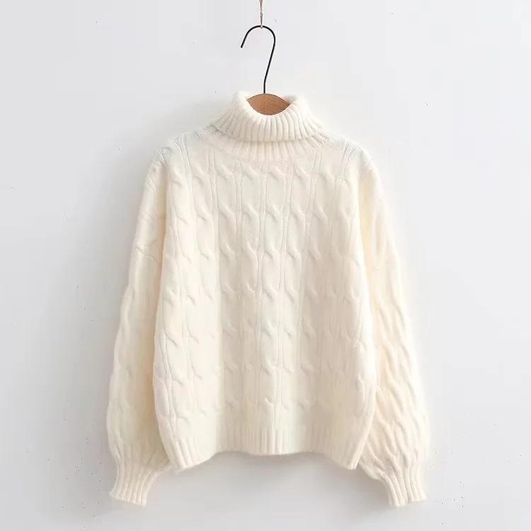 Suéter grueso de cuello alto trenzado para mujer invierno cálido jersey holgado fresco pequeño suéter top interior blanco