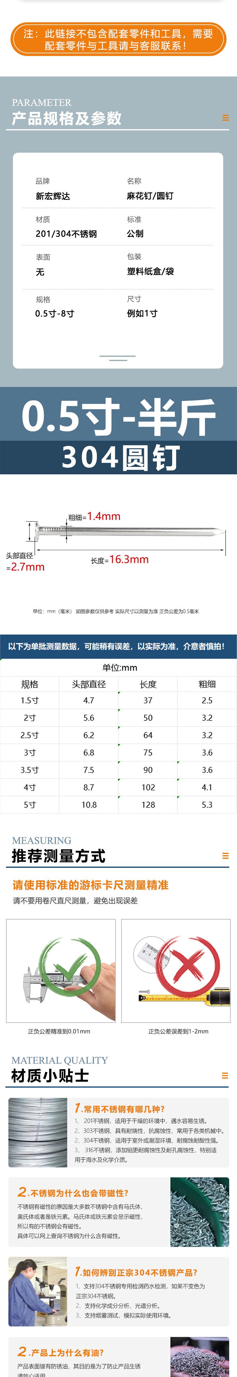 304 twist nails 1.5inch - half a pound (about 219 pieces), 304 twist nails 2.0inch - half a pound (about 1.3 p...