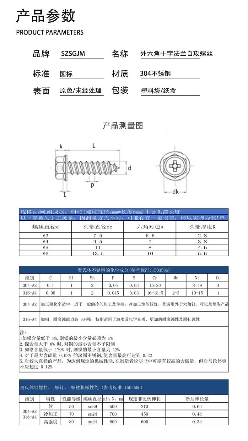 Tornillos Autorroscantes de Acero Inoxidable 304 Personalizados con Brida Hexagonal Externa Cóncava de Cabeza Hexagonal M3-M6