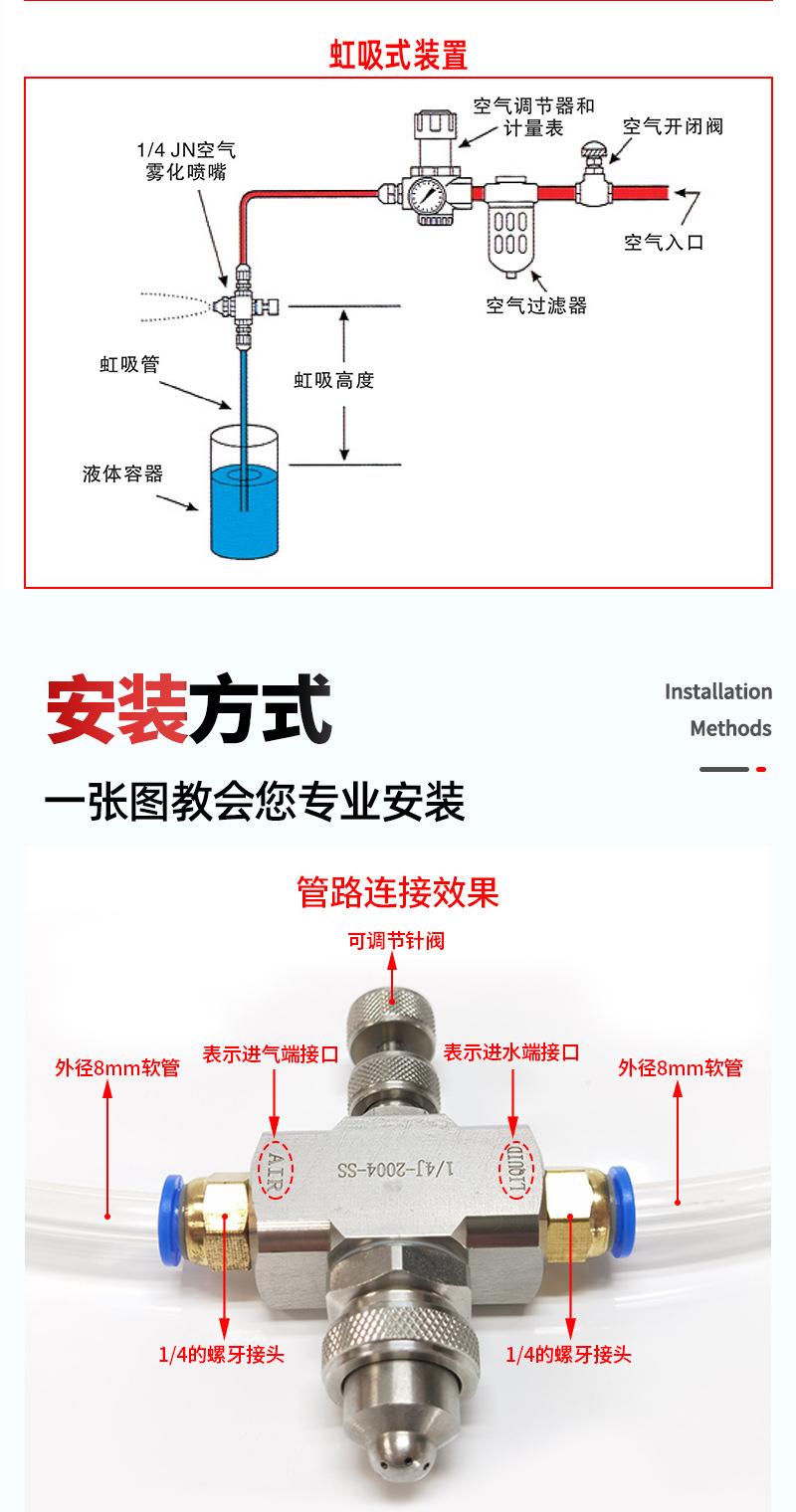 Boquilla de Atomización de Aire de Acero Inoxidable Personalizada Taller Eliminación de Polvo, Humidificación y Enfriamiento Boquilla de Desinfección Biflujo Ajustable Procesamiento