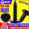 Tornillo de rosca cruzada invertida de cabeza plana negra de acero inoxidable 304, tornillo para muebles Zigong de cabeza redonda plana M3M4M5M6