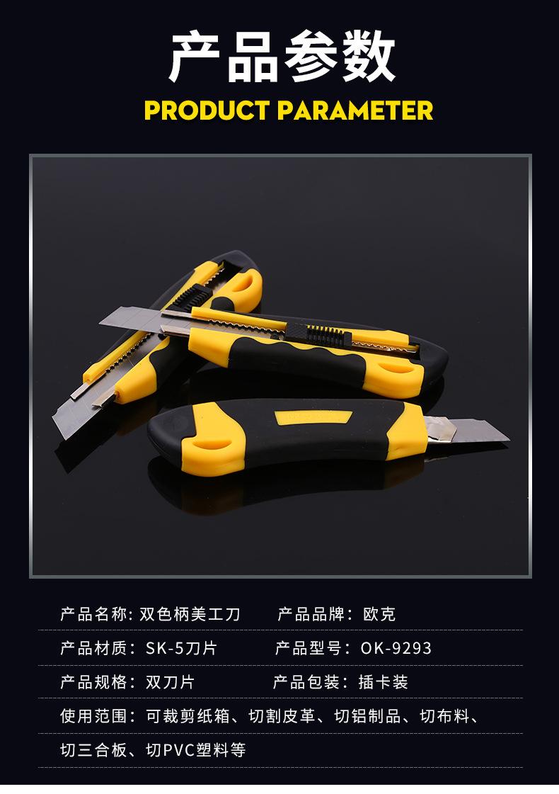 Two-color handle utility knife (12 pcs in box, 120 pcs in box) item no. 9293