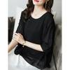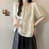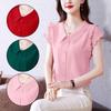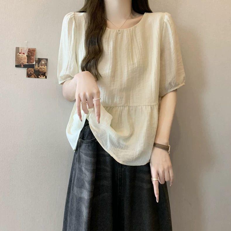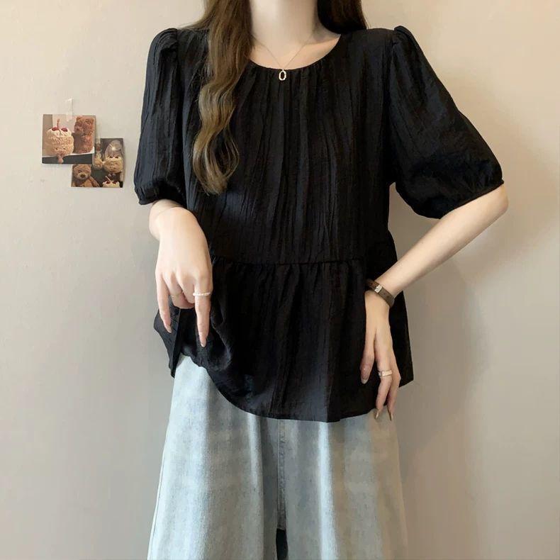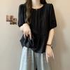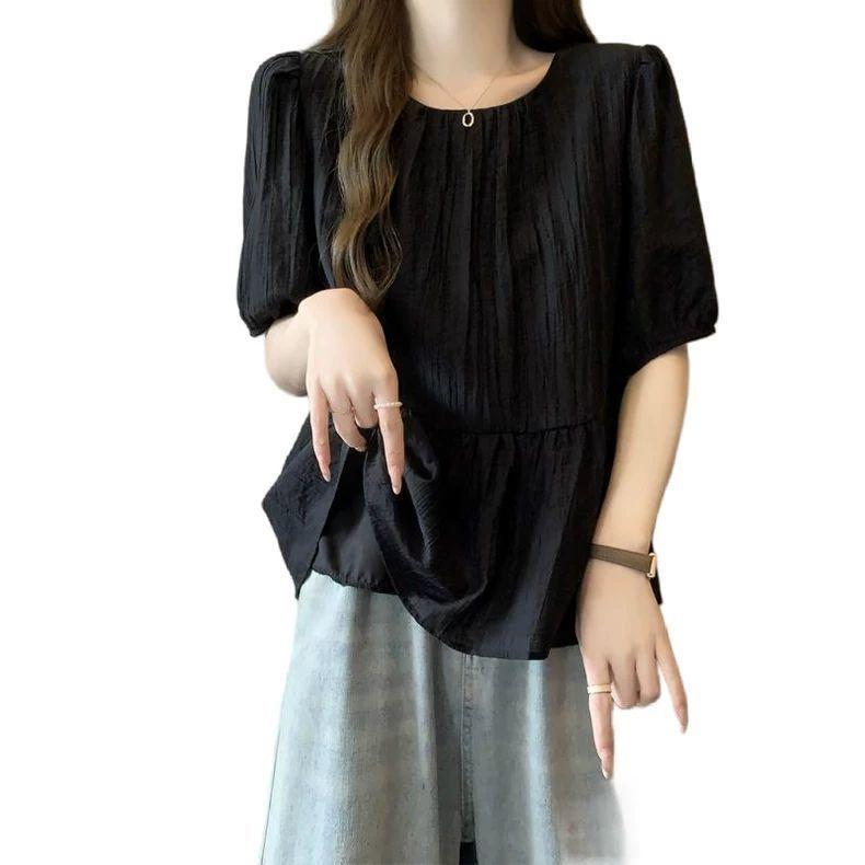 Cubriendo Vientre, Hombro Derecho, Camisa de Chifón de Manga Corta para Mujer, Verano Nuevo Talla Grande Chica Gorda, Top Holgado Adelgazante Manga Abullonada