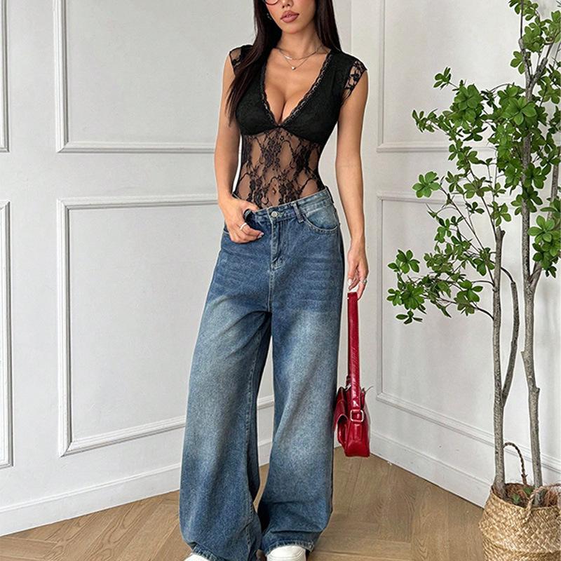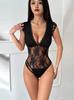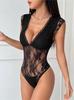 Exportación Transfronteriza Europea y Americana 2025 Nuevo Fiesta Casual Sexy Versátil Encaje sin Mangas Cuello en V Mono Negro