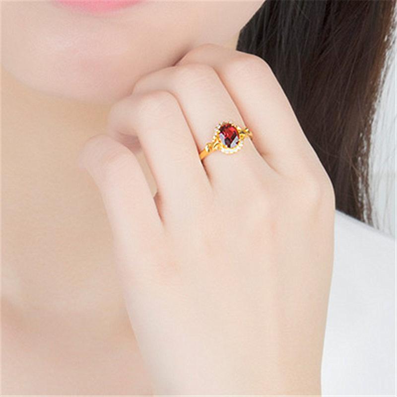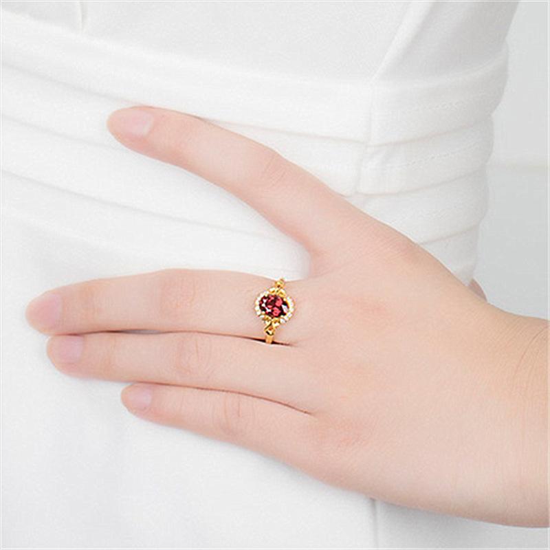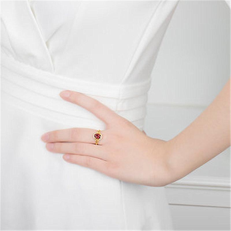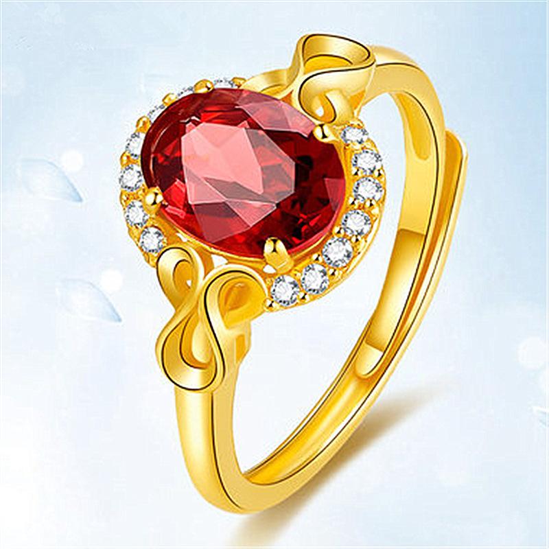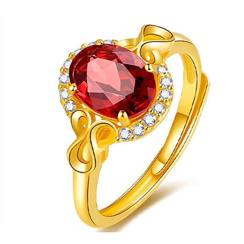 Anillo nuevo chapado en oro con incrustaciones de granate, anillo de rubí, anillo de amor ajustable