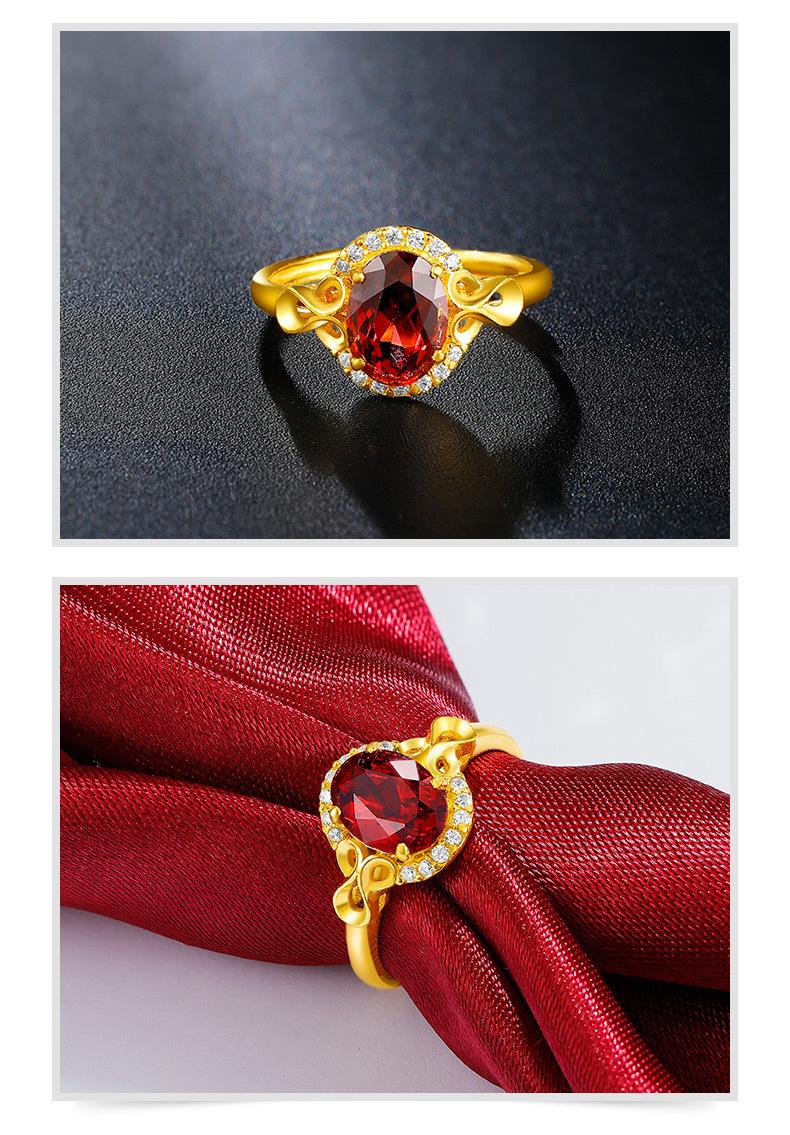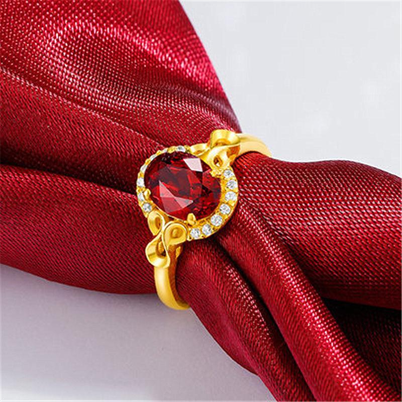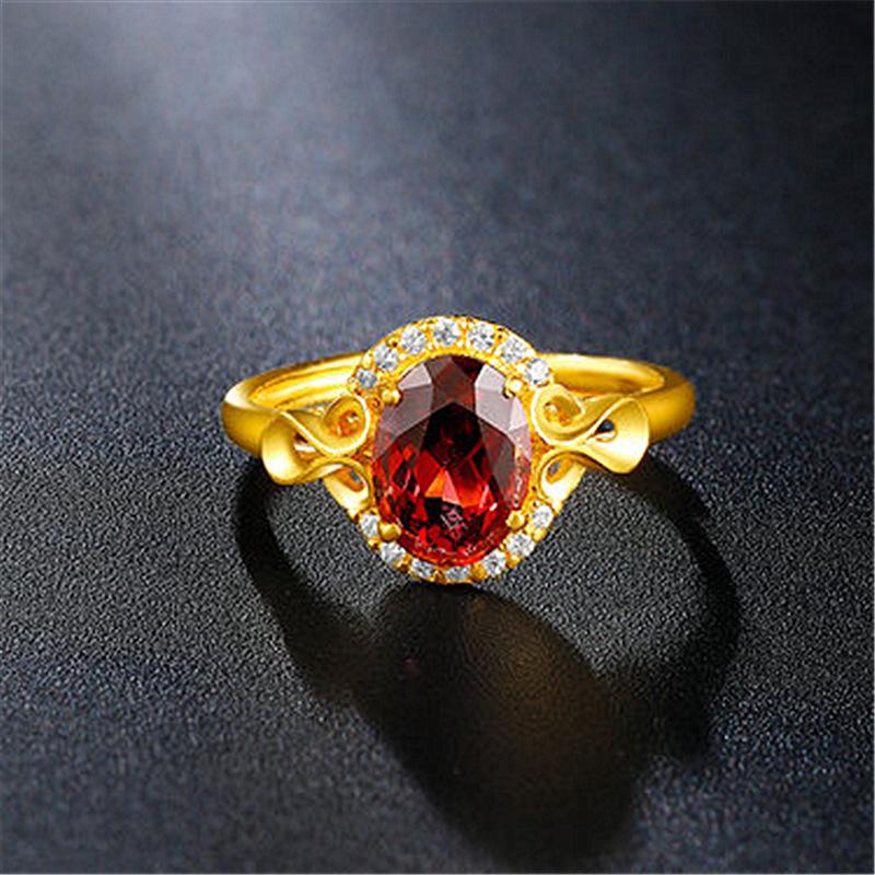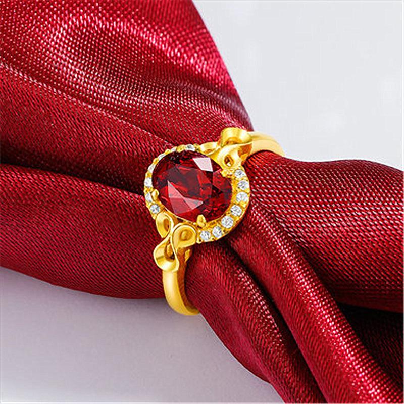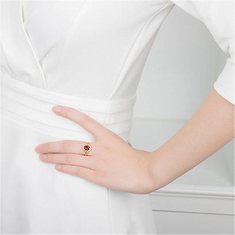 Anillo nuevo chapado en oro con incrustaciones de granate, anillo de rubí, anillo de amor ajustable