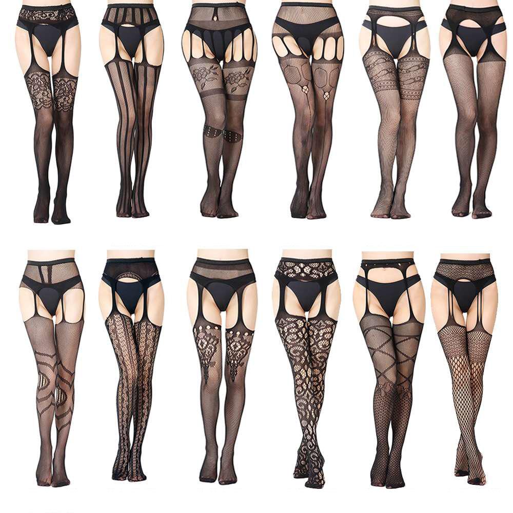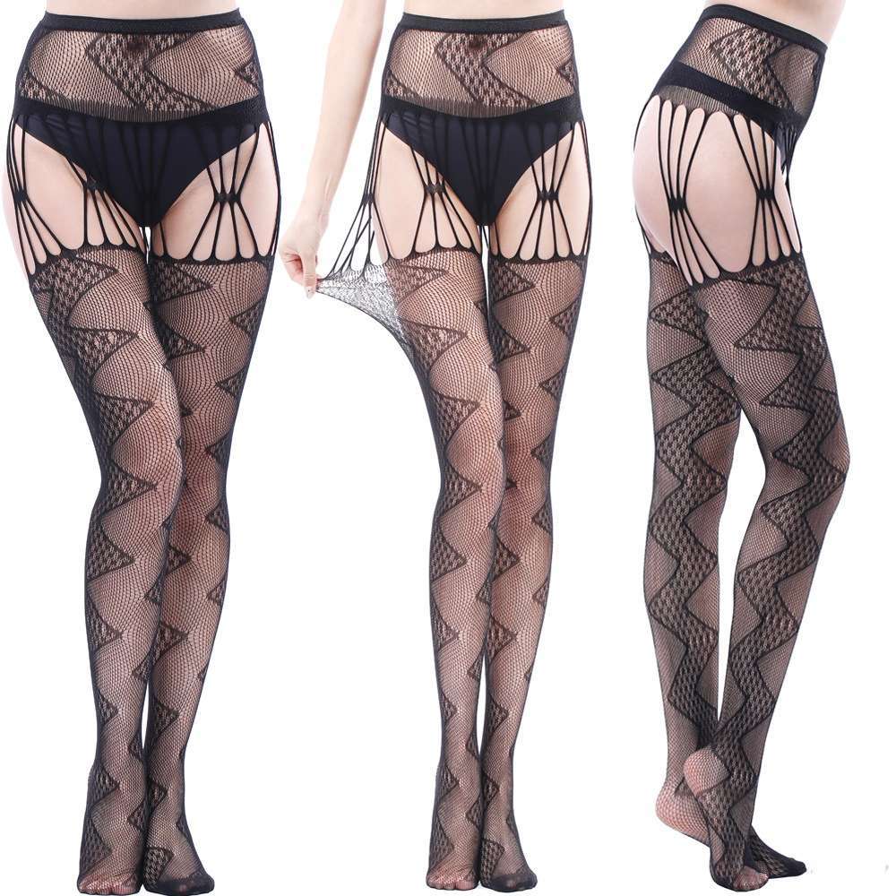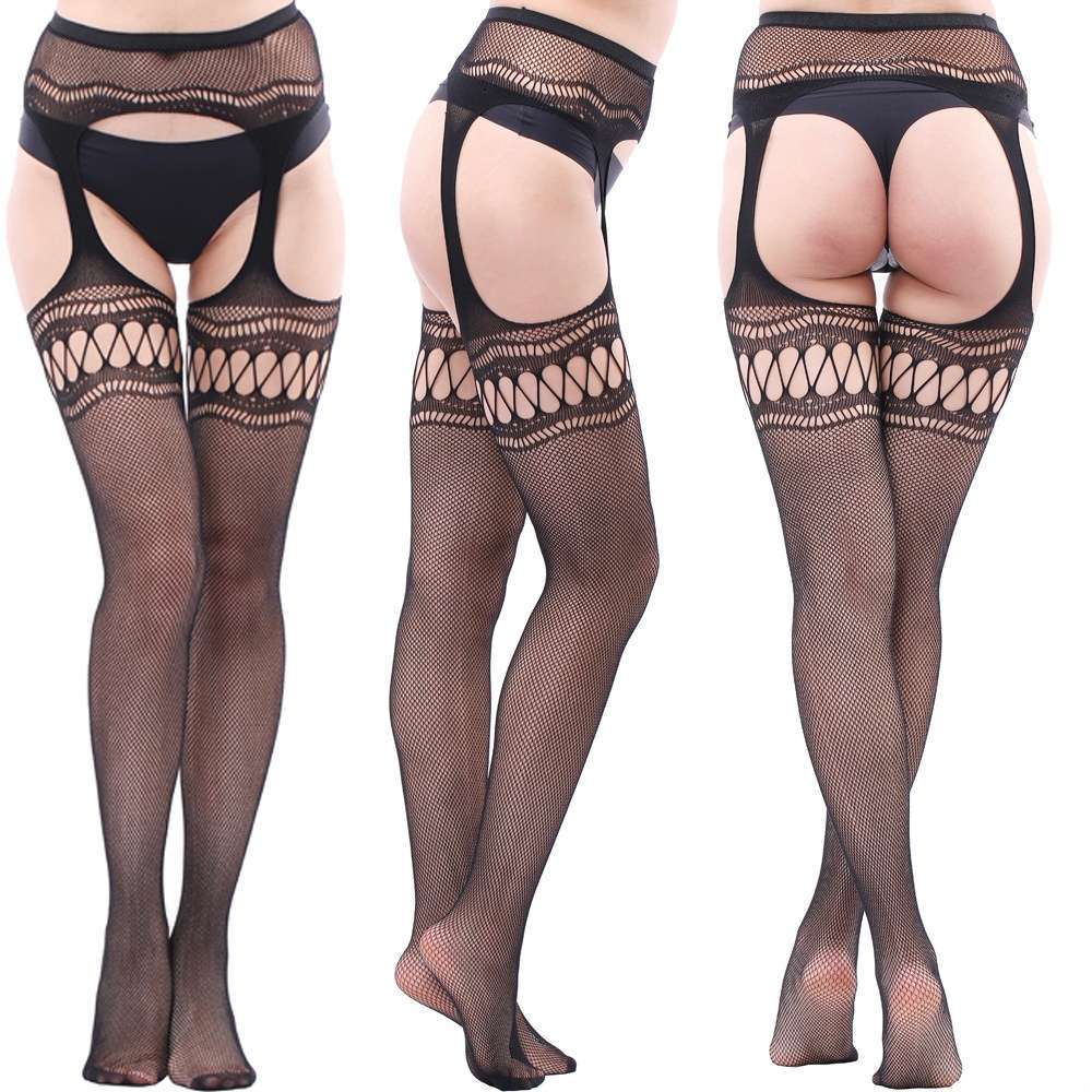 Medias de Red Caladas con Tirantes Europeos y Americanos Super Elásticas Ligas Sexy Pantimedias para Mujer de Malla Fina Abierta Antideslizantes