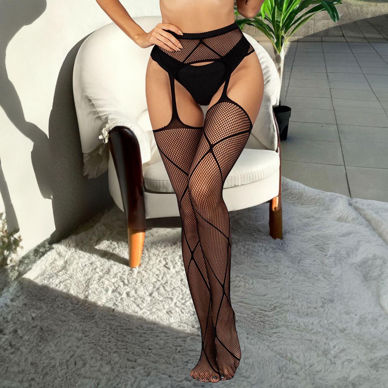 Medias de Liguero Sexy para Mujer a Cuadros de Diamantes Grandes Talla Grande Super Elásticas de Malla Fina Abierta Medias