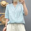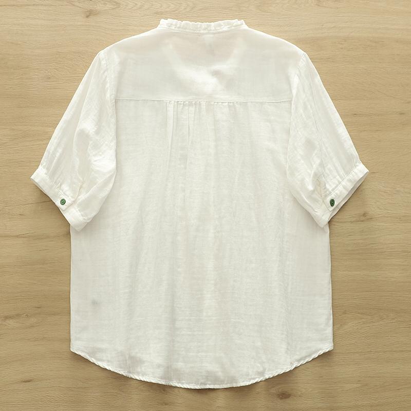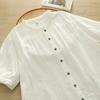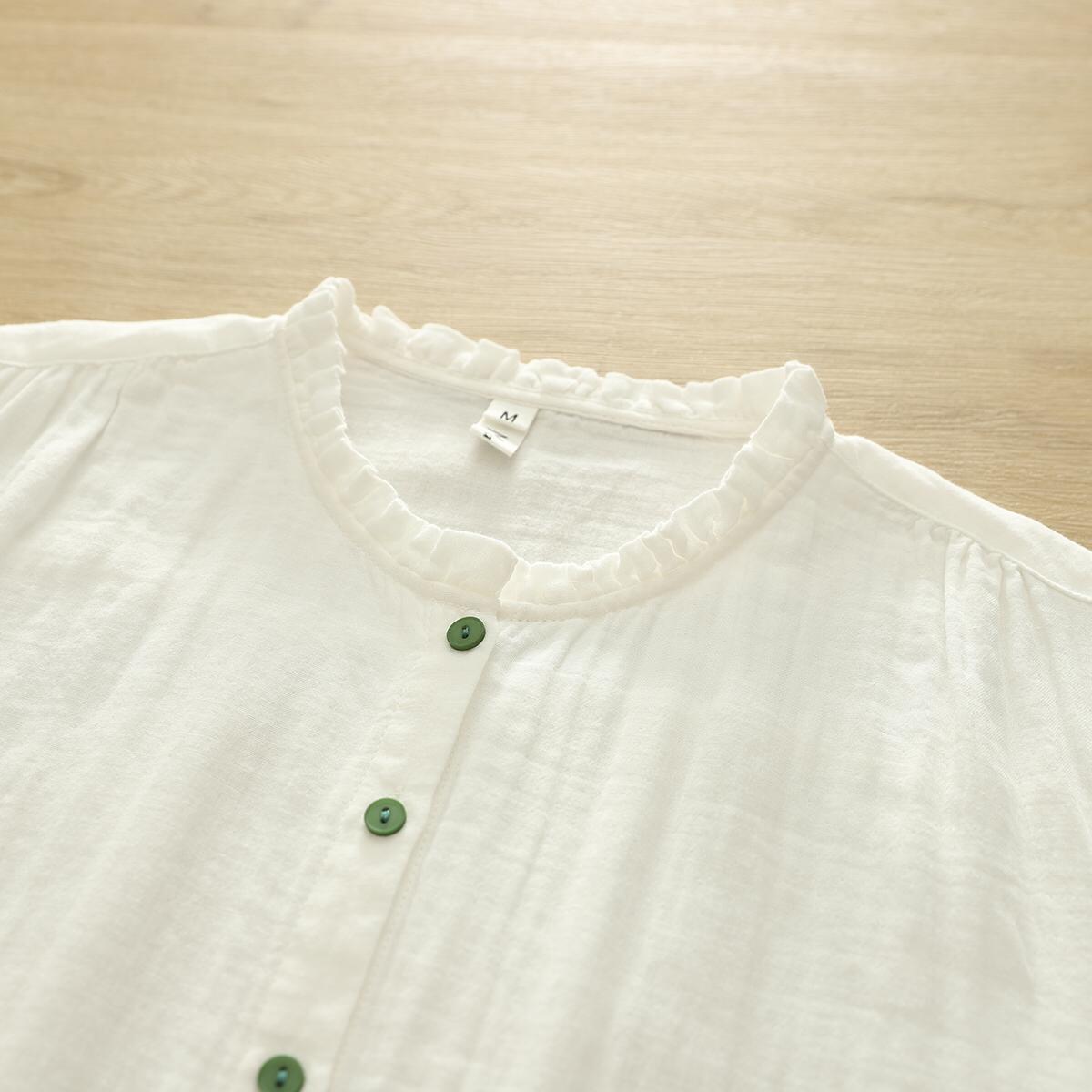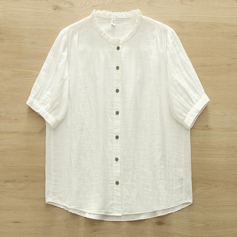 2025 verano nuevo color sólido cuello de encaje hongo manga corta camisa para mujer top holgado casual versátil hilo de algodón moda