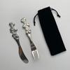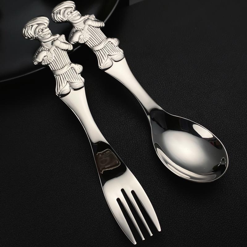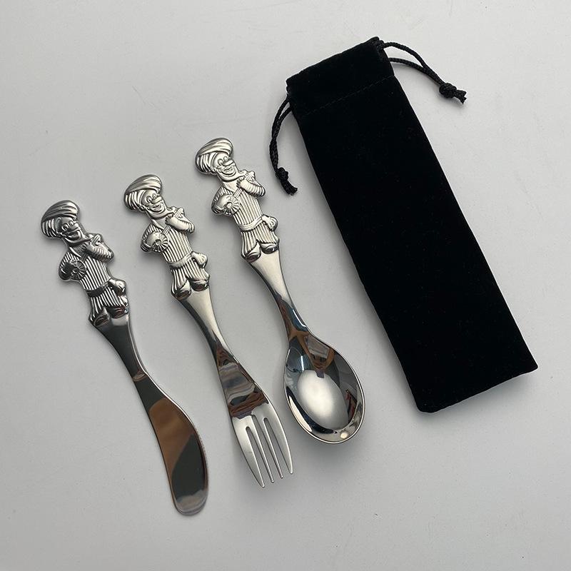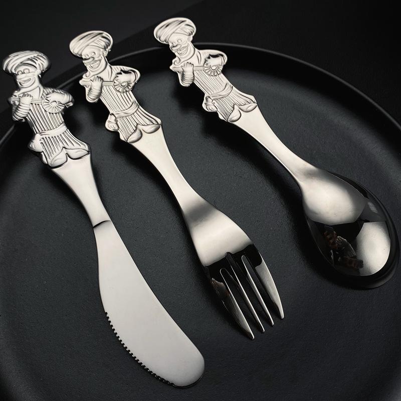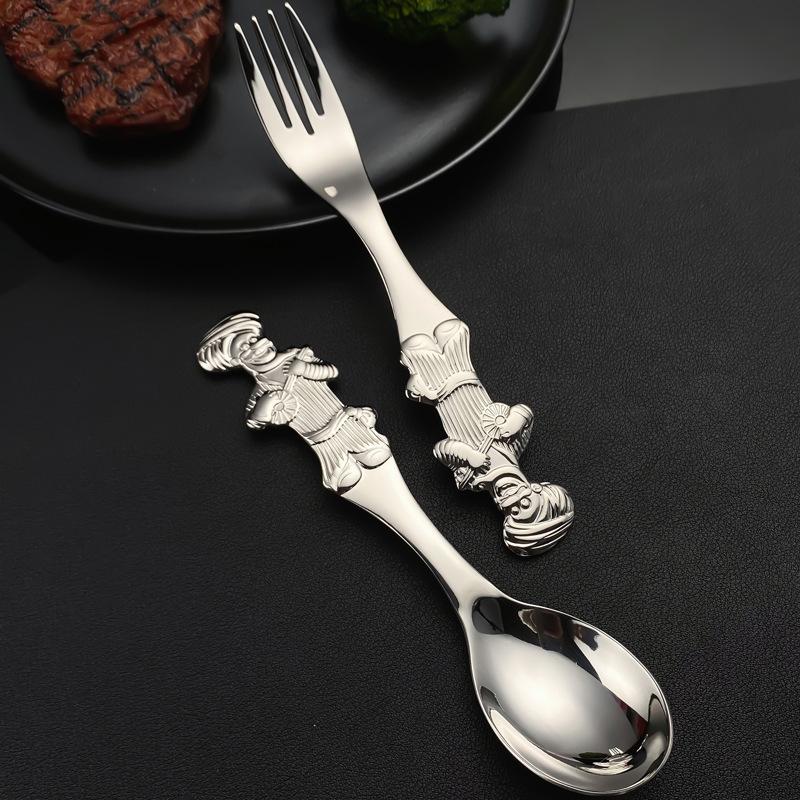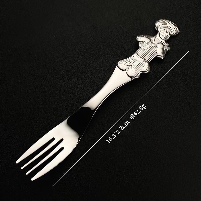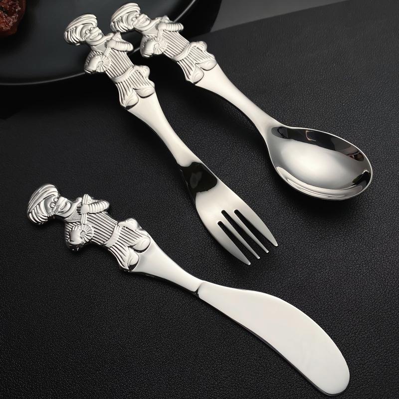 Cuchillo y tenedor de acero inoxidable 304 transfronterizo, cuchara creativa de dibujos animados en relieve, vajilla infantil, juego de cuchara y tenedor para postre lindo para el hogar