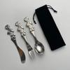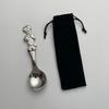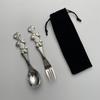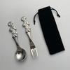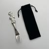 2-piece set: round-headed spoon and fork + black drawstring pocket
