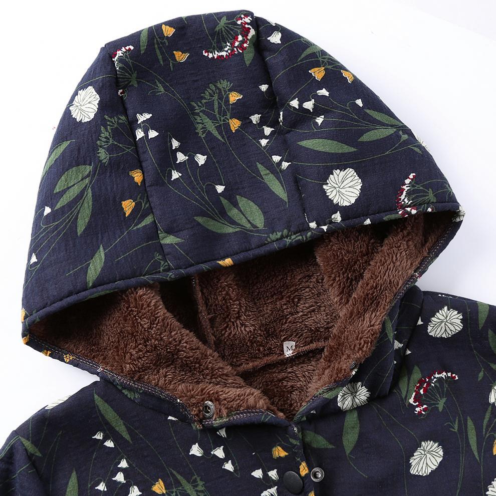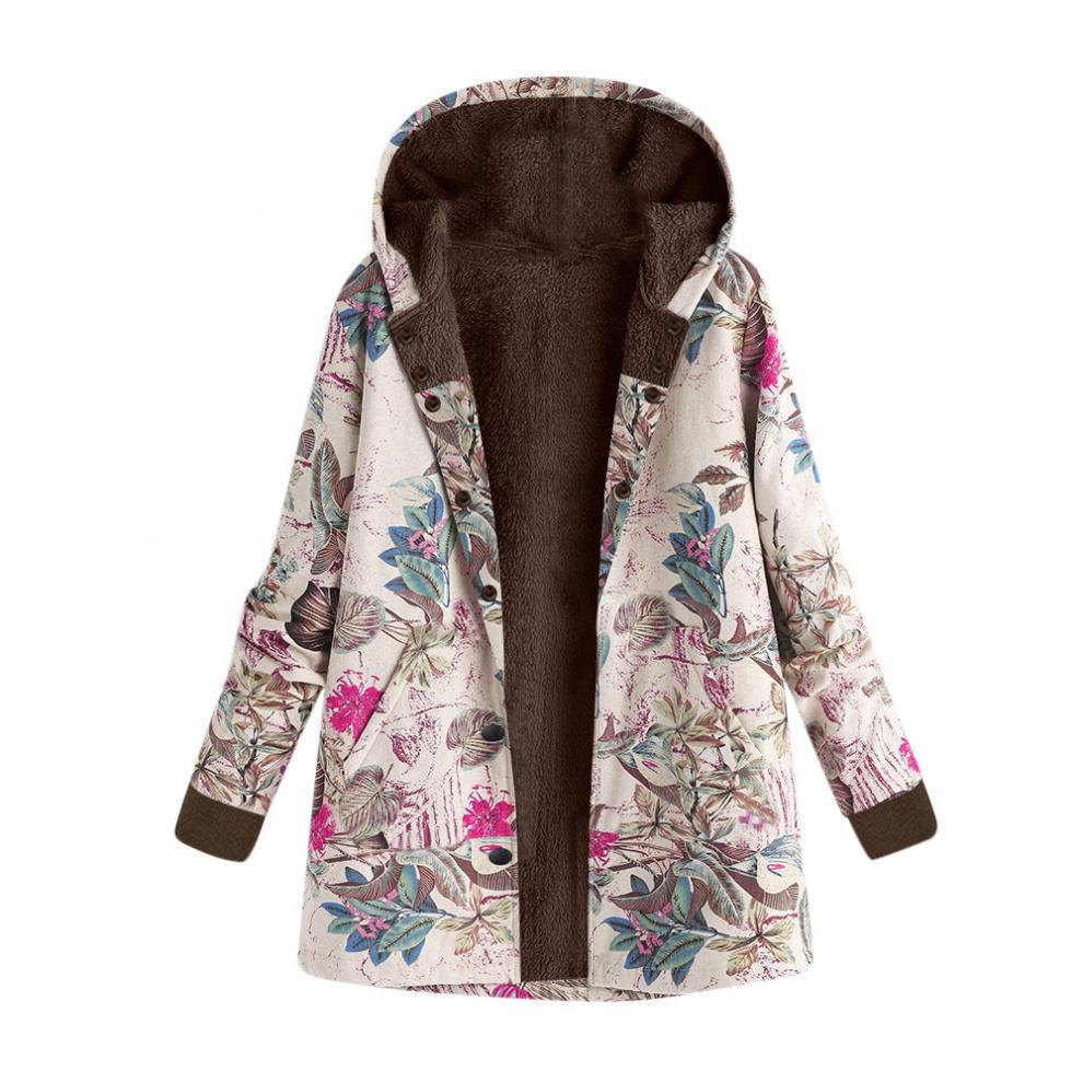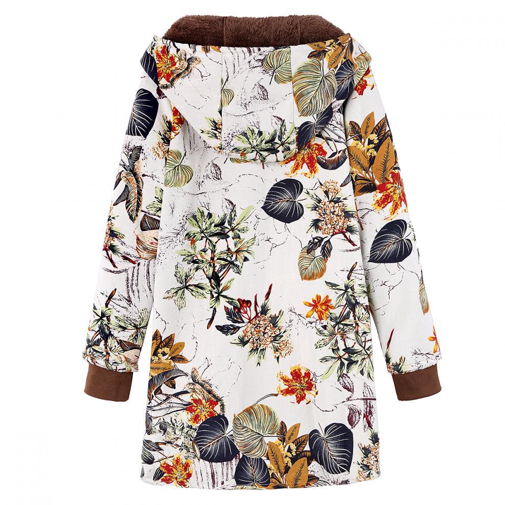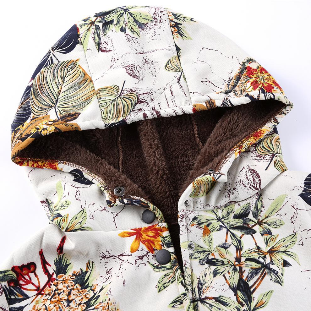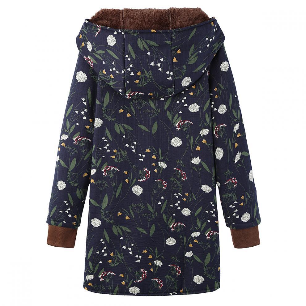 Foto Real de Ropa Exterior de Algodón Felpa Grueso con Capucha y Manga Larga para Mujer, Estampado de Flores Retro, Talla Grande, Chaqueta con Capucha