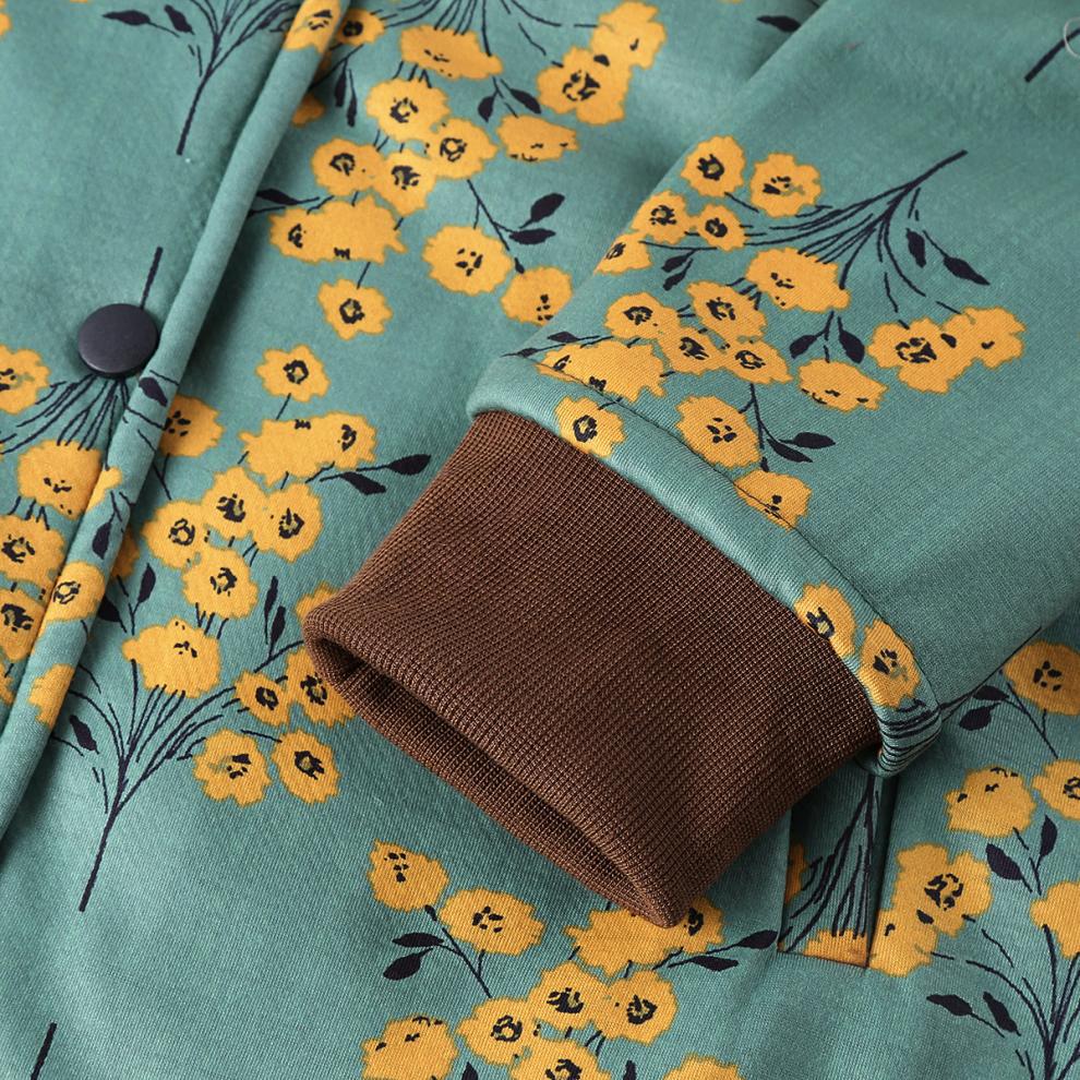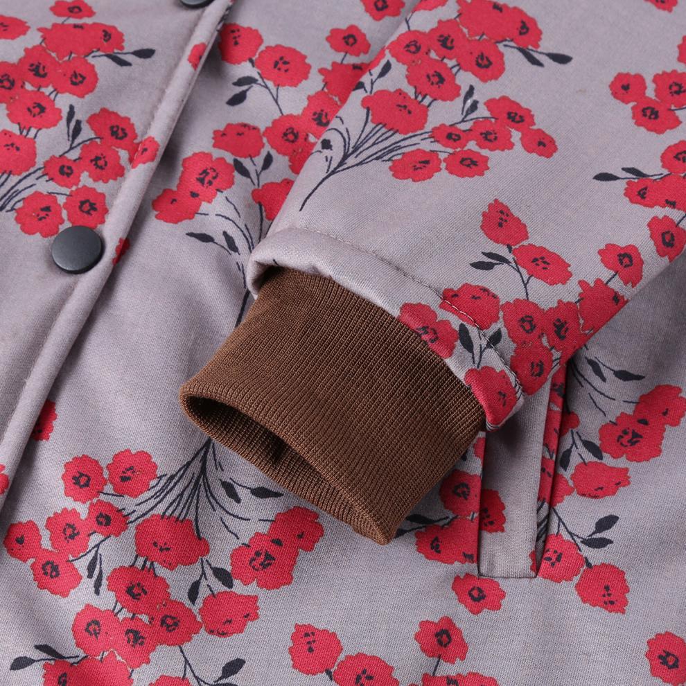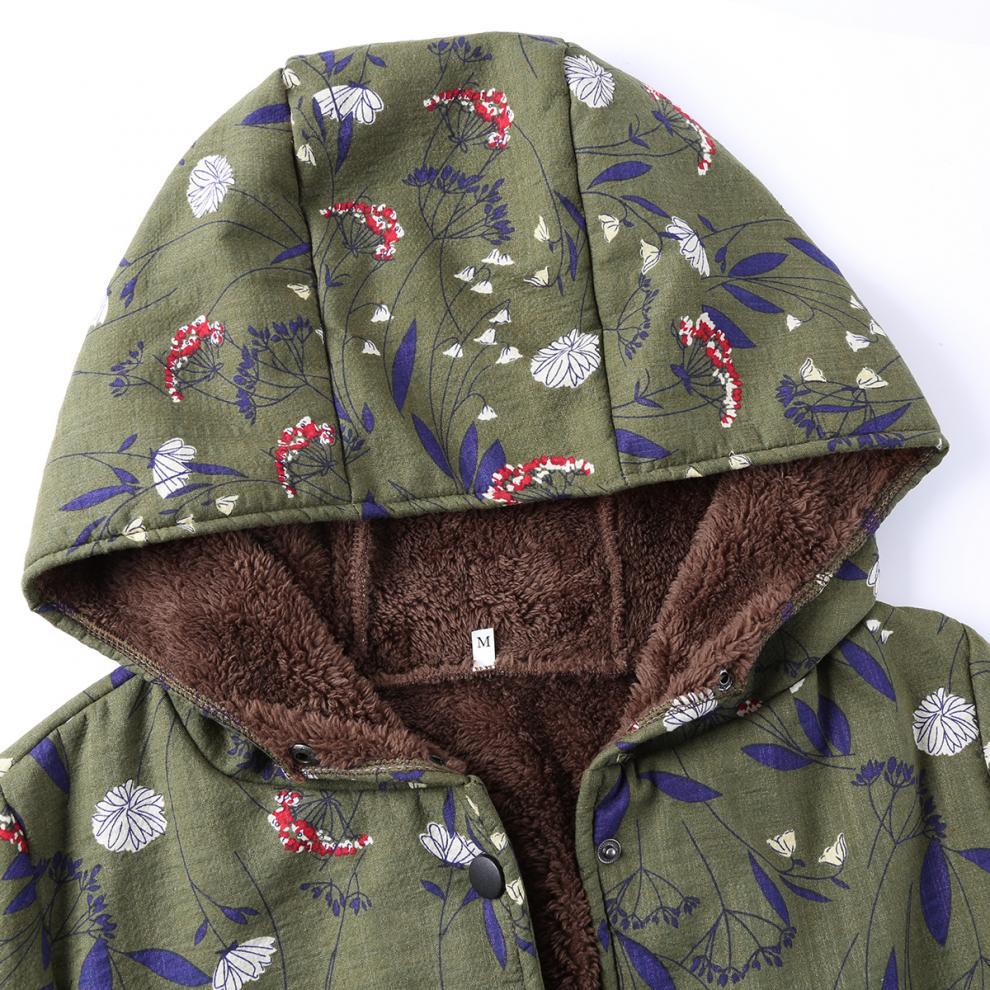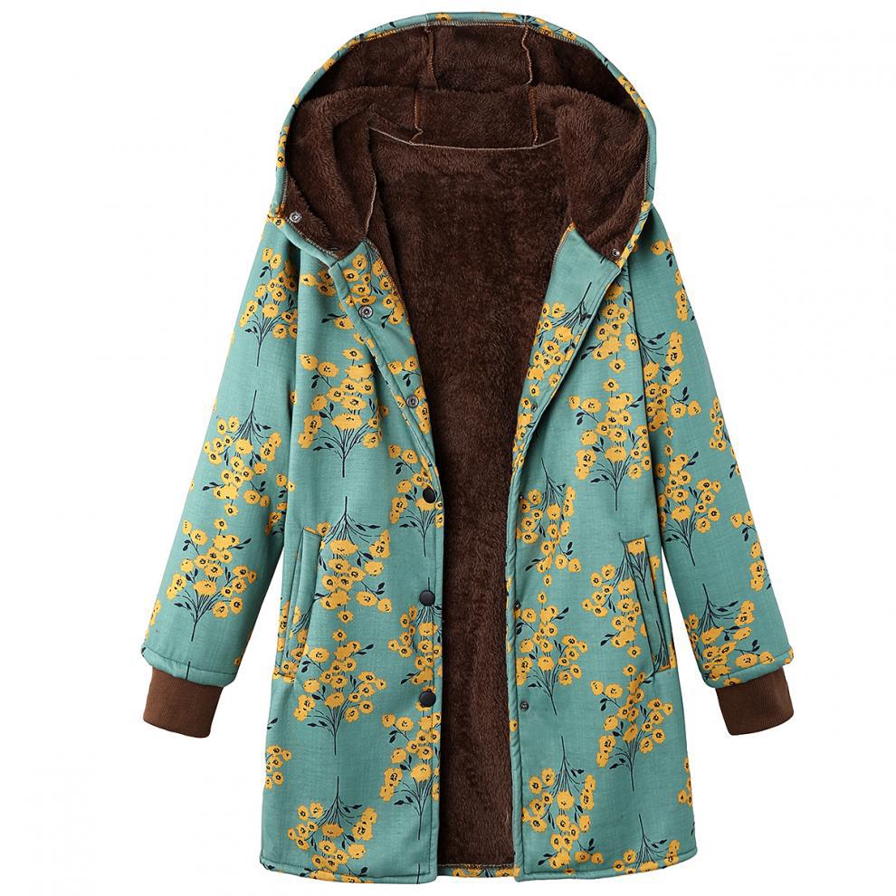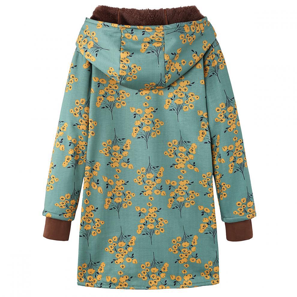 Foto Real de Ropa Exterior de Algodón Felpa Grueso con Capucha y Manga Larga para Mujer, Estampado de Flores Retro, Talla Grande, Chaqueta con Capucha