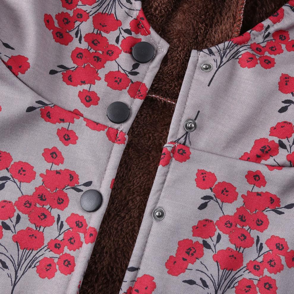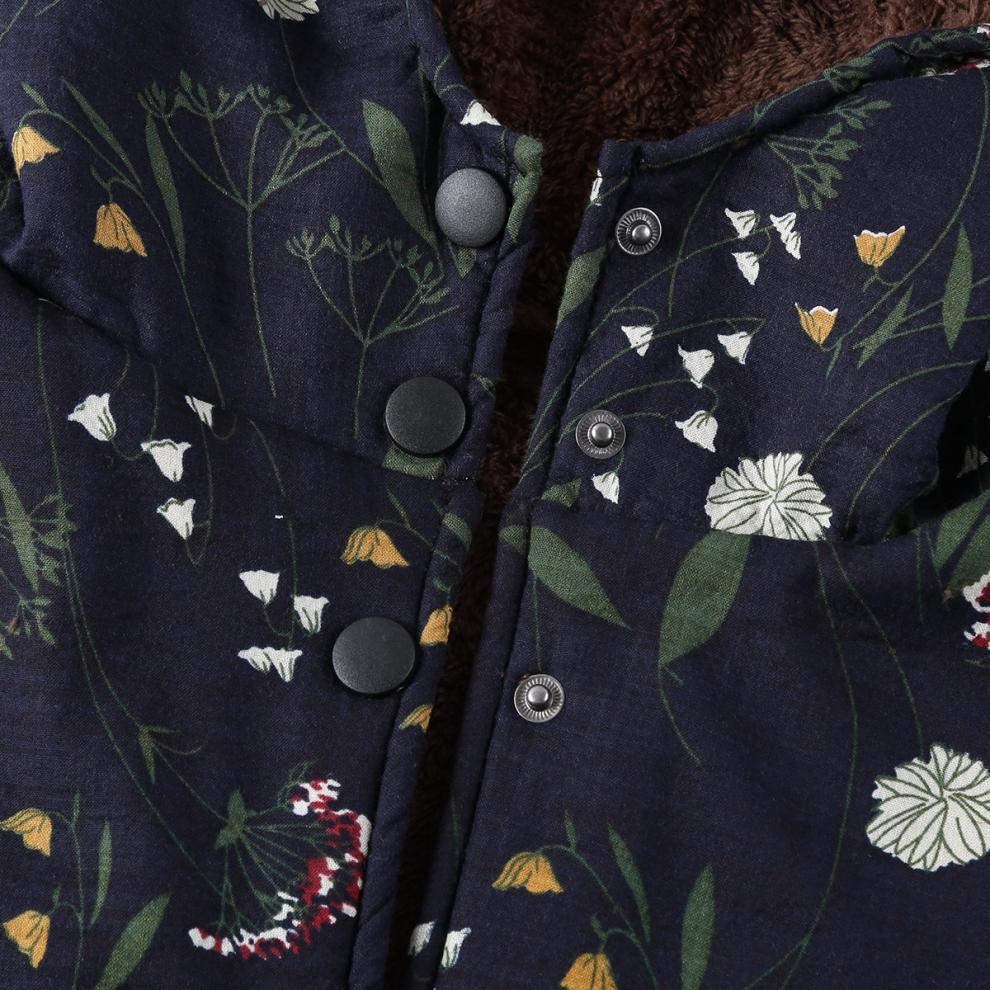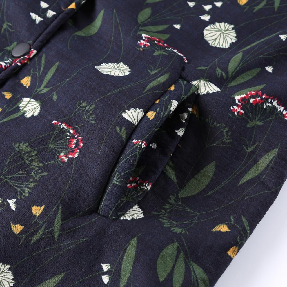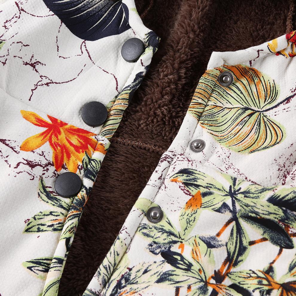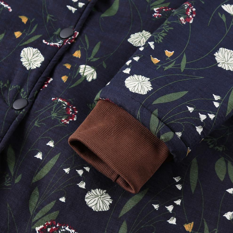 Foto Real de Ropa Exterior de Algodón Felpa Grueso con Capucha y Manga Larga para Mujer, Estampado de Flores Retro, Talla Grande, Chaqueta con Capucha