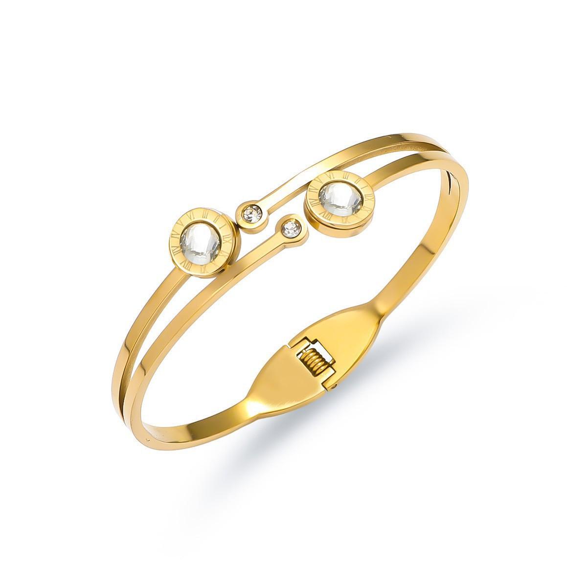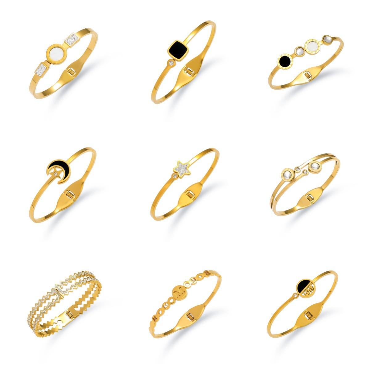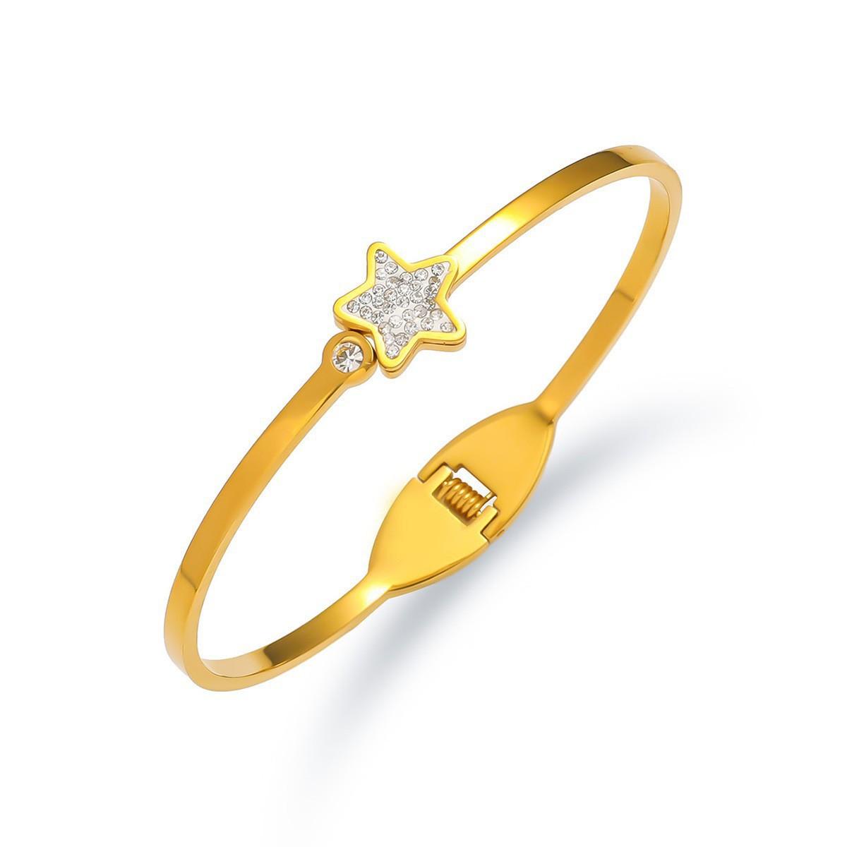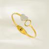 Pulsera para Mujer, Moda Transfronteriza Corazón Mariposa Zircón Pulsera, Resorte Abierto, Pulsera de Acero Titanio Sencilla y Versátil Joyería