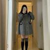 2025 Nuevo Abrigo de Lana de Otoño e Invierno Estilo Coreano Pequeño Invierno Largo Medio Gris Abrigo de Lana para Mujer
