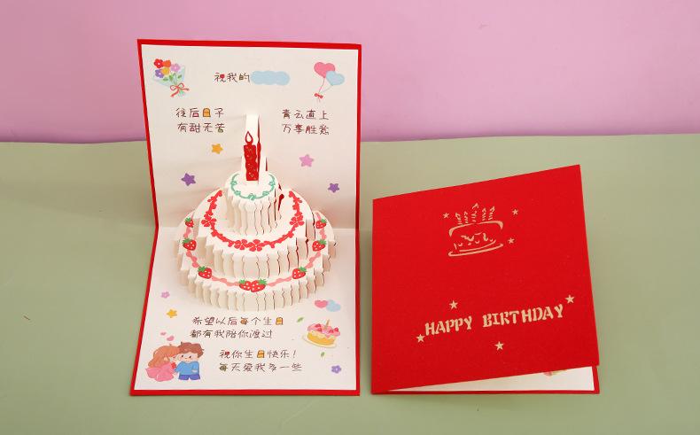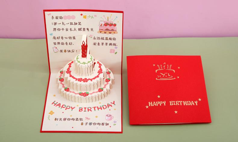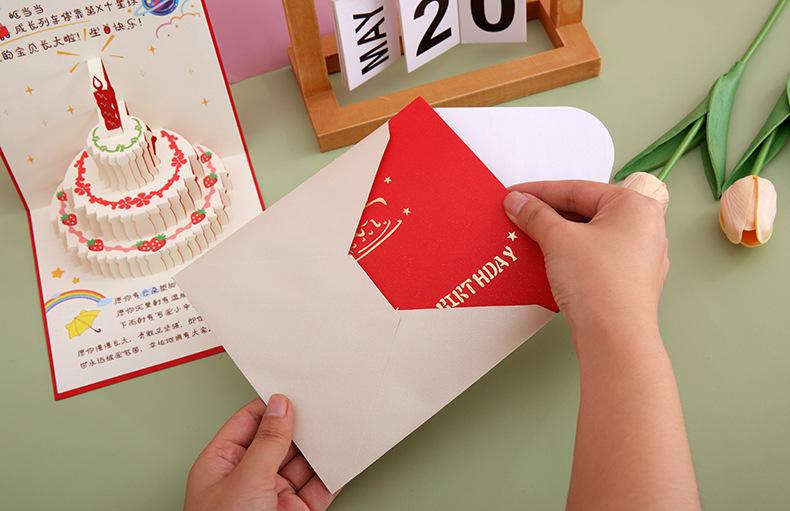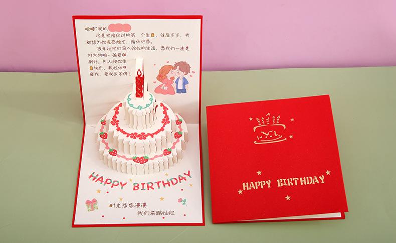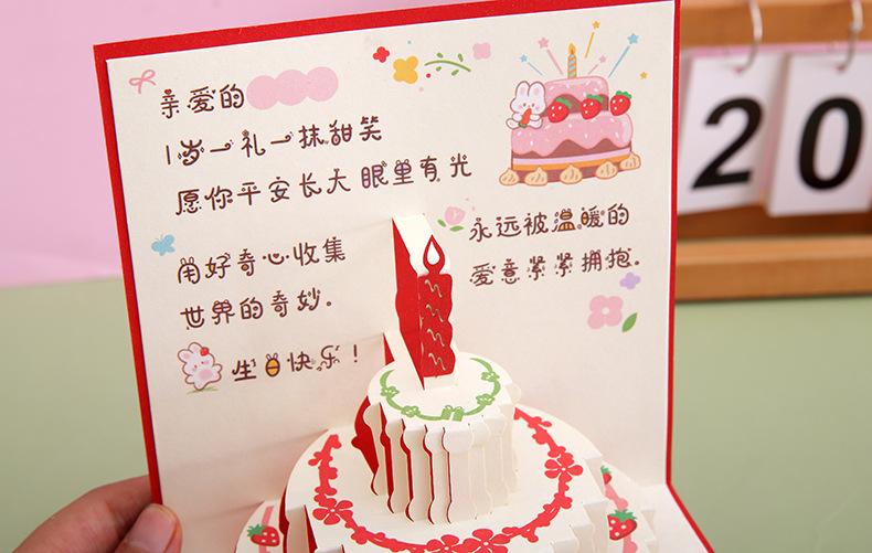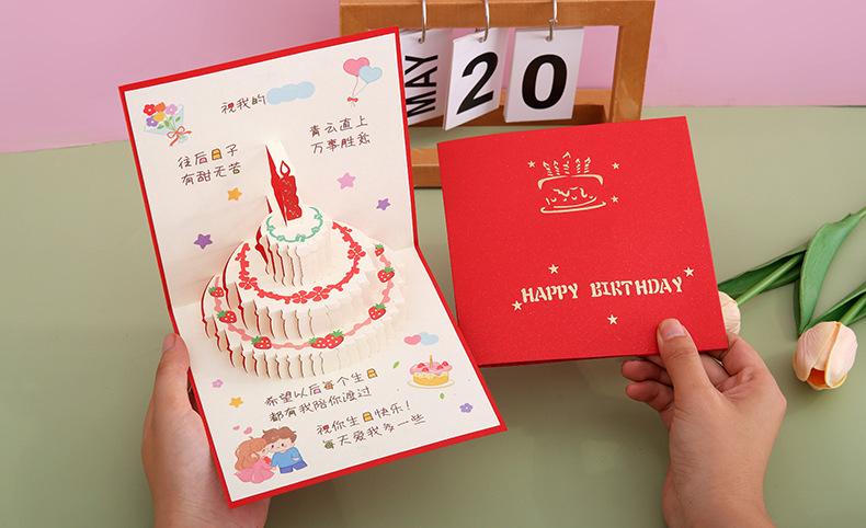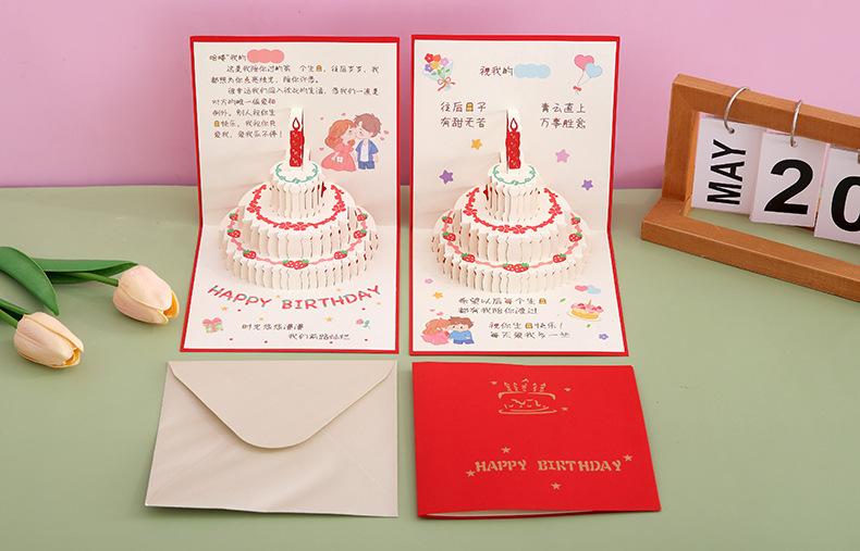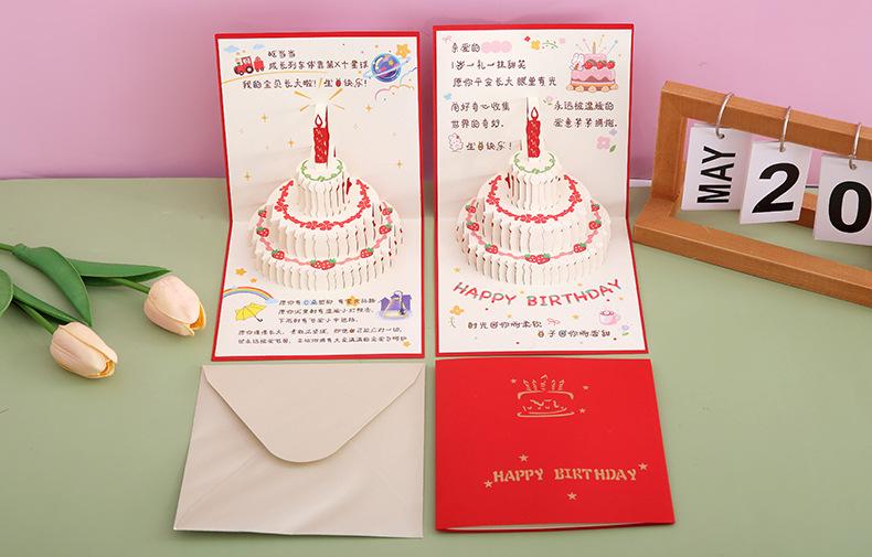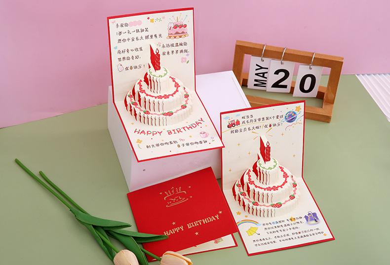 Tarjeta de Felicitación de Pastel de Cumpleaños Estéreo 3D Estilo Ins Hecha a Mano Tarjeta de Bendición Mensaje Regalo de Alta Gama Tarjeta de Felicitación Plegable