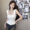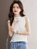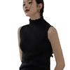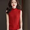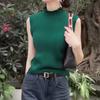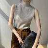 Chaleco sin mangas de cuello alto medio, color puro, tirantes, para mujer, primavera, ajuste ceñido, versátil, capa interior, camisa, suéter exterior, top de punto