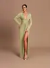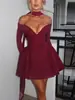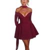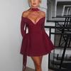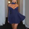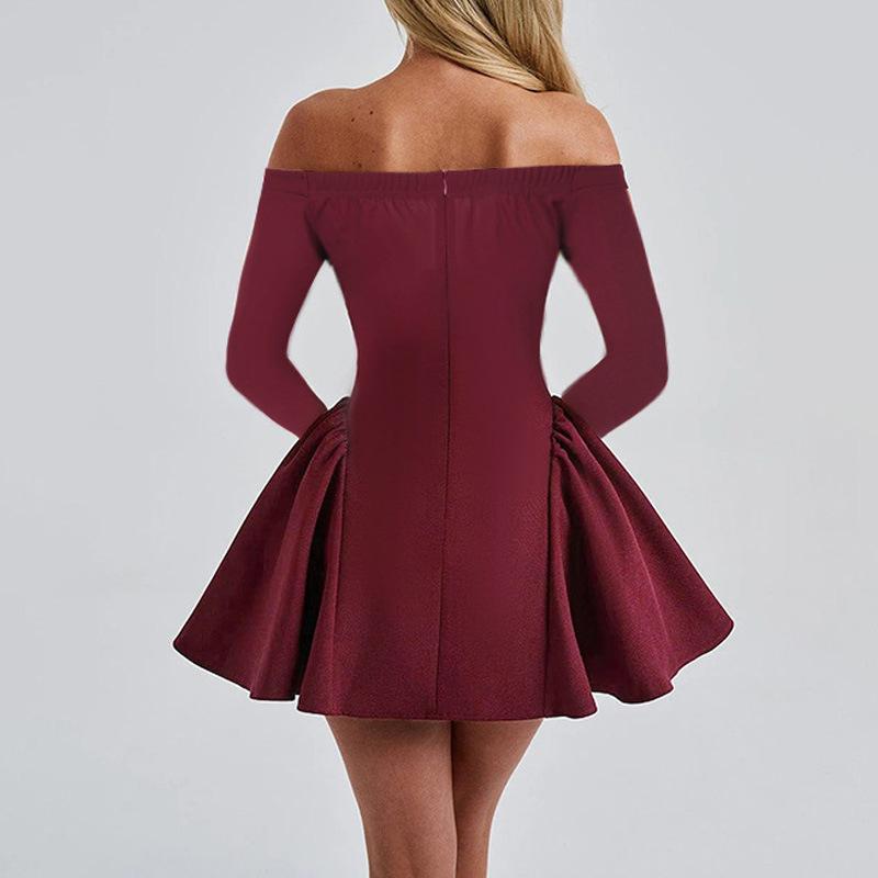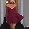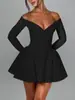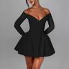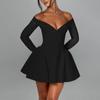 Moda Transfronteriza Europea y Americana Elegante Sexy Elegante Lv Vestido Corto Esponjoso de Manga Larga con Cuello en V de Color Puro para Mujer