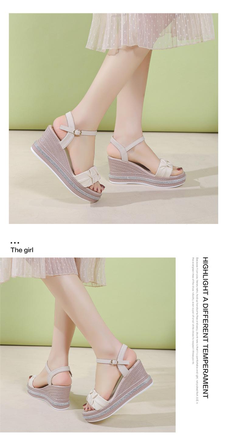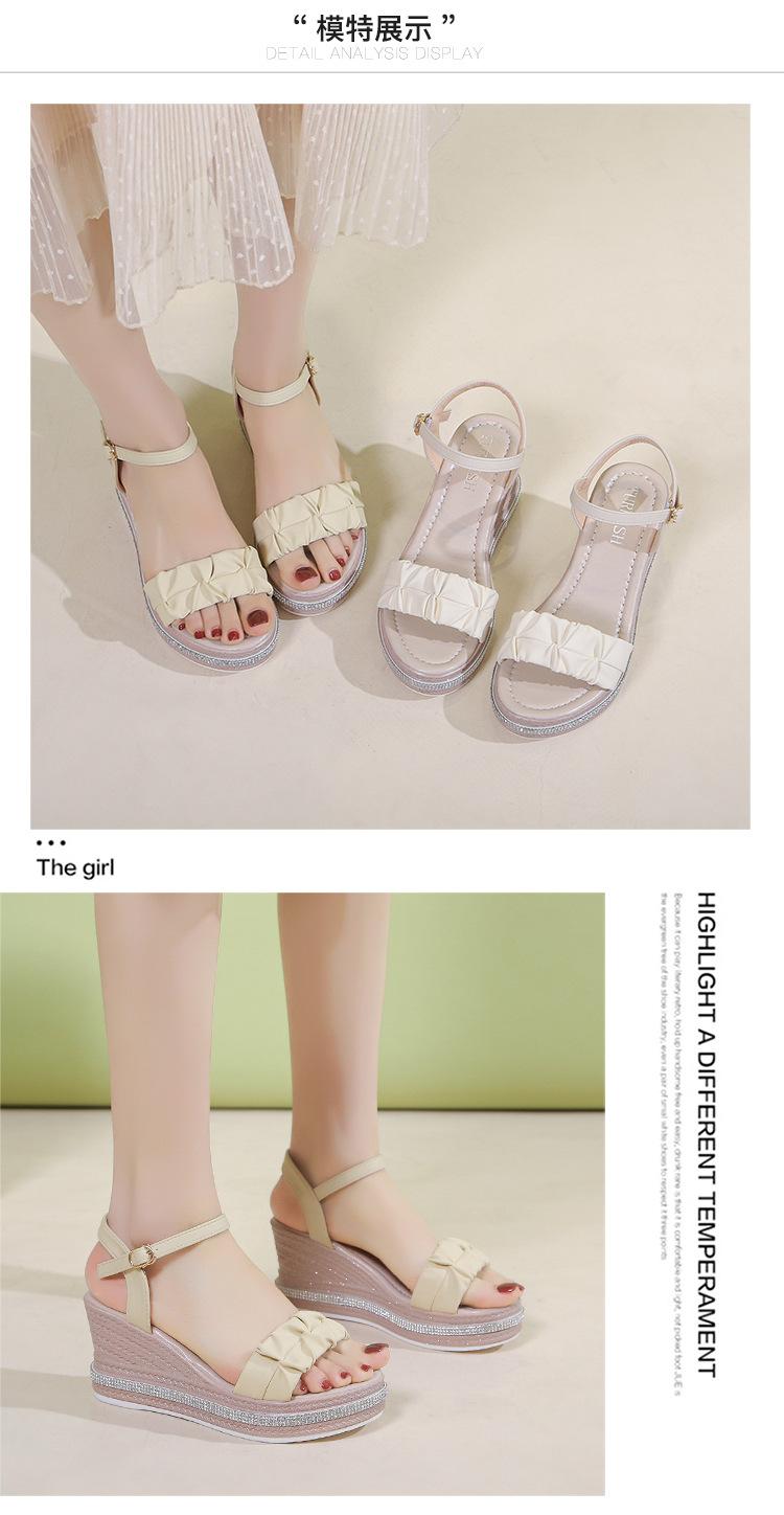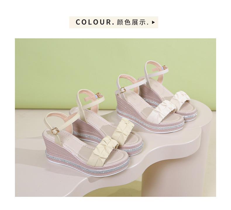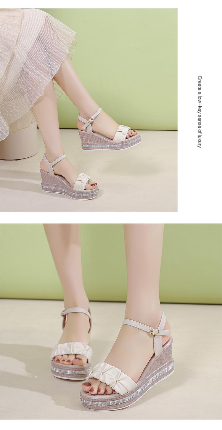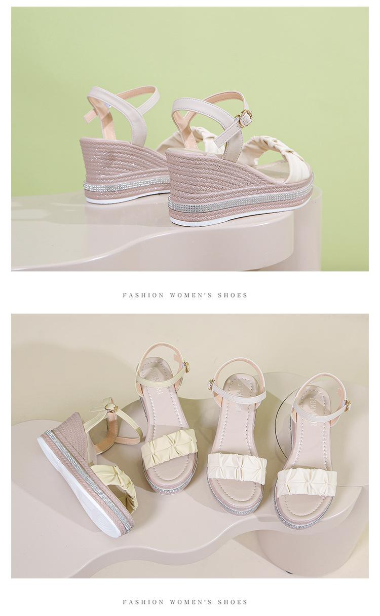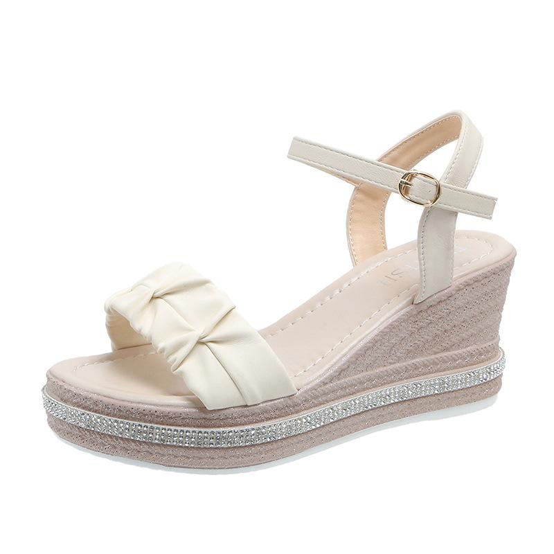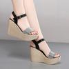 Sandalias de cuña para mujer 2024 primavera y verano nuevas sandalias de tacón alto con hebilla de pedrería sandalias cómodas para mujer al por mayor