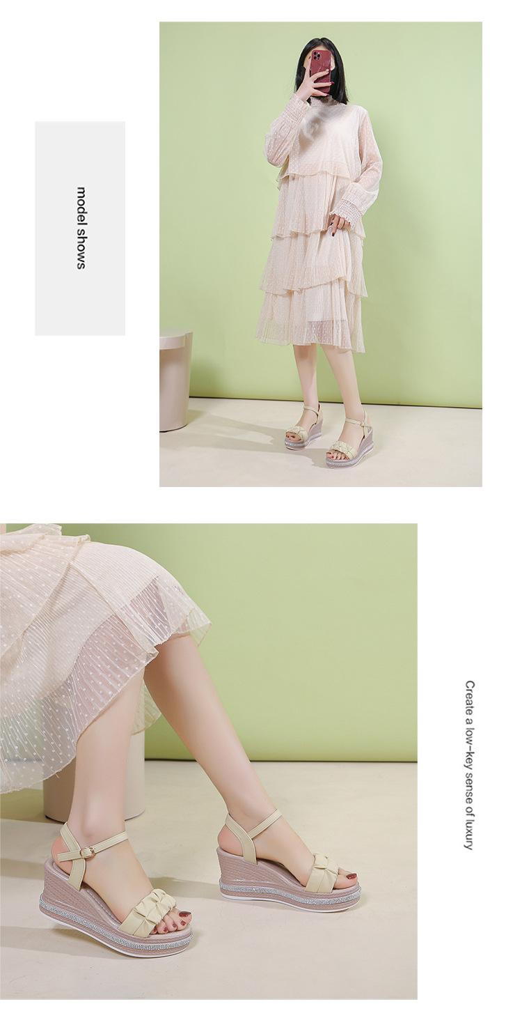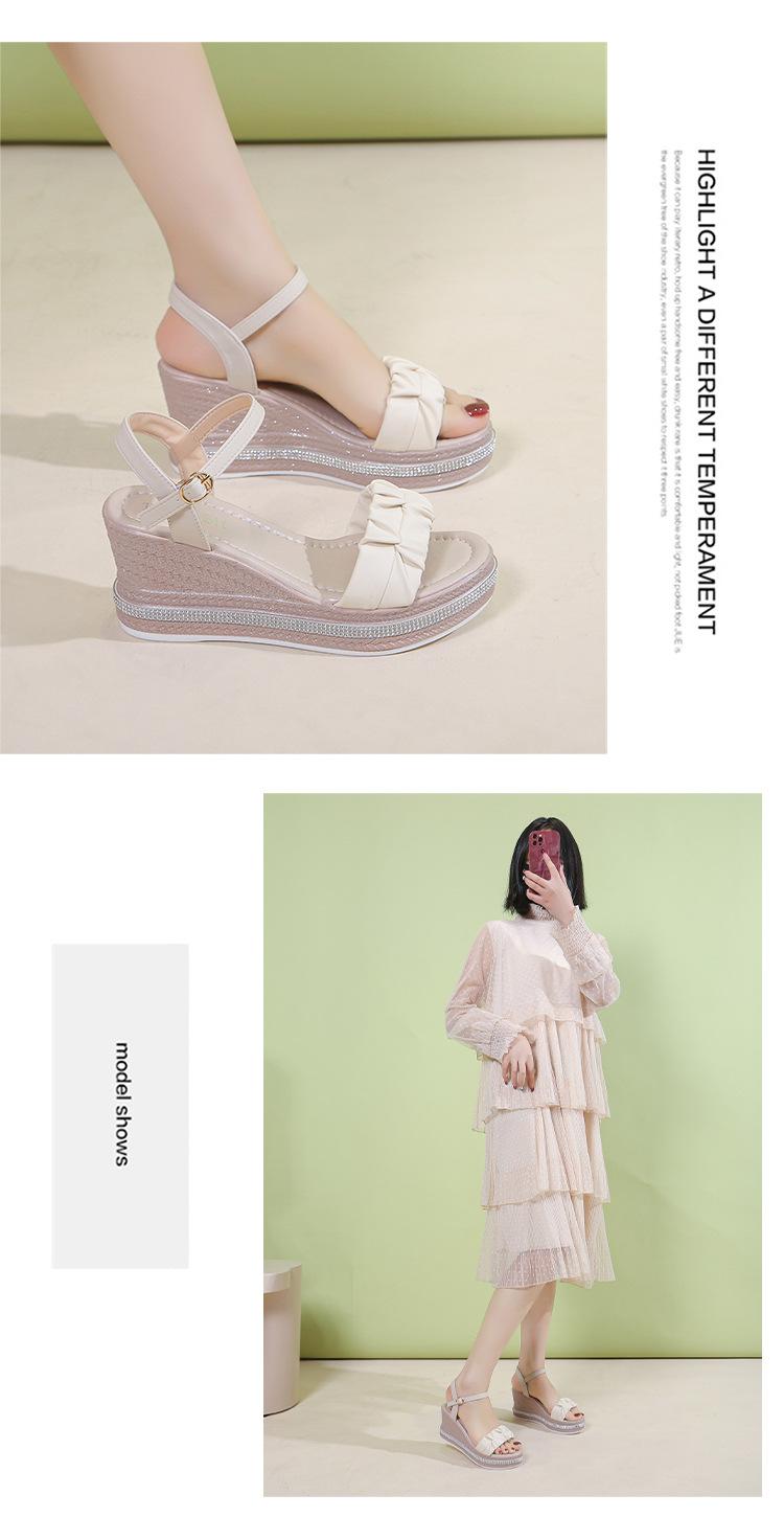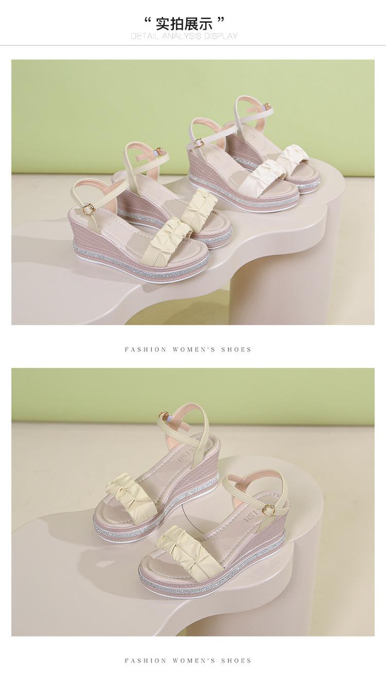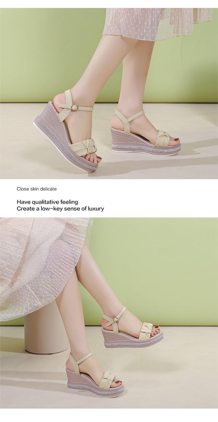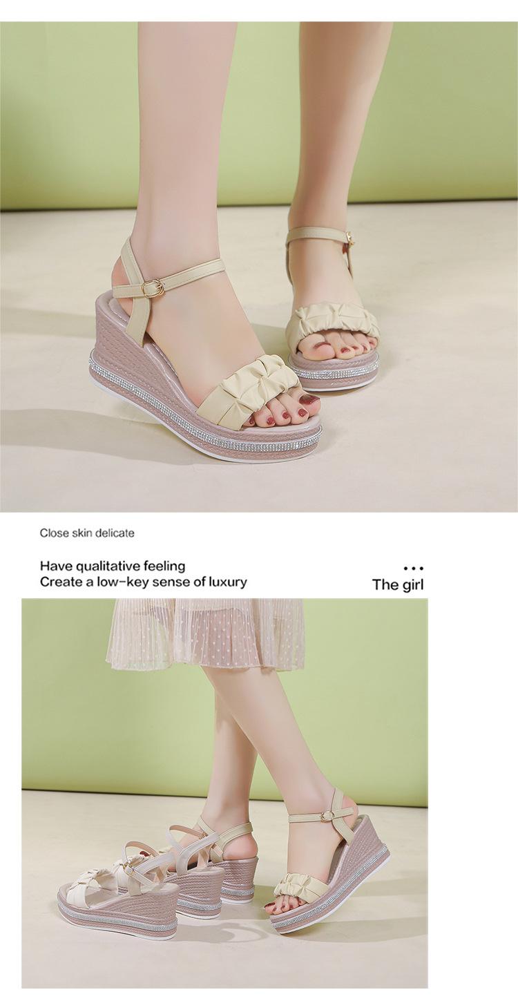 Sandalias de cuña para mujer 2024 primavera y verano nuevas sandalias de tacón alto con hebilla de pedrería sandalias cómodas para mujer al por mayor