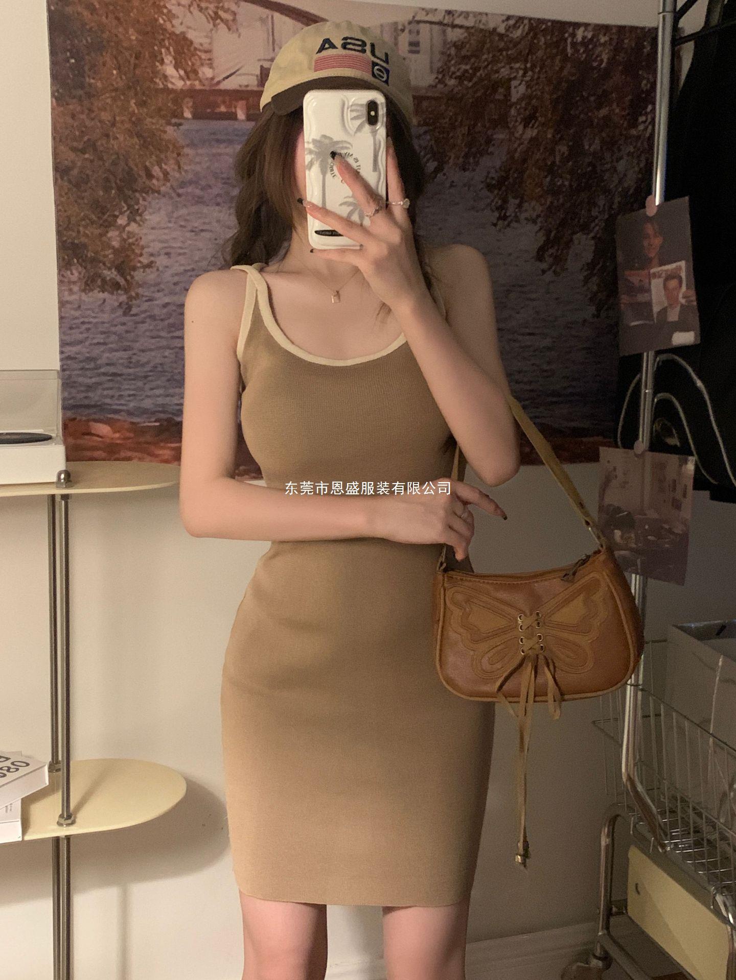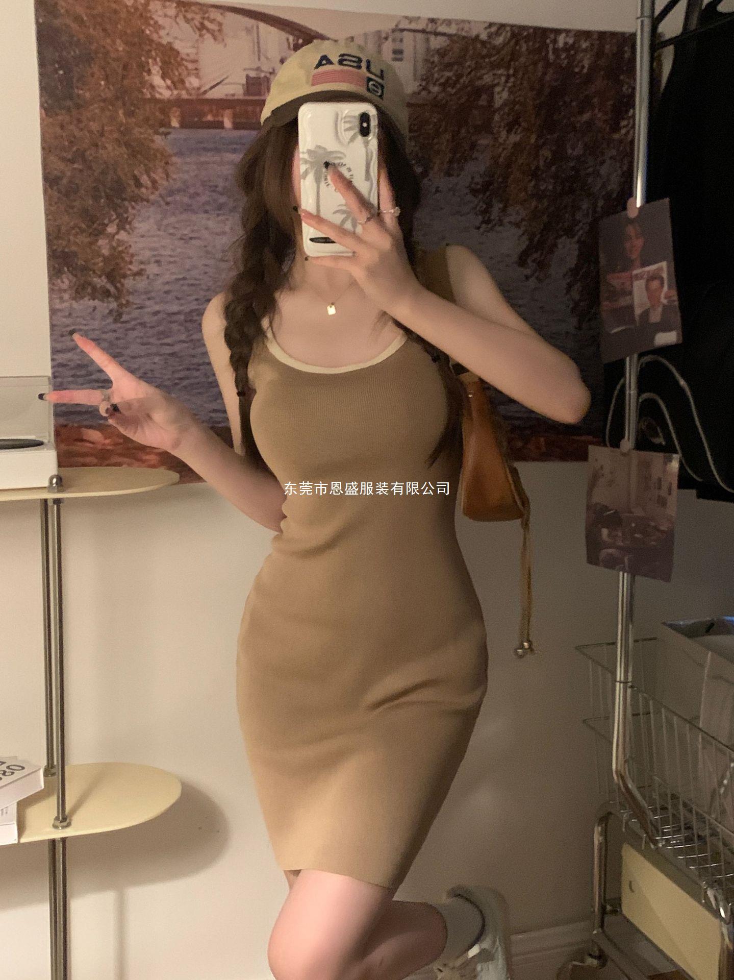 Estilo Coreano Verano Nuevo Sexy Vestido de Tirantes Diseño Nicho Estilo Americano Sexy Chaleco Fresco Falda Corta