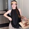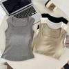 Otoño Nuevo Camisola para Mujer Estilo Occidental Camisa Pequeña con Diamante Slim Cubre Vientre Camiseta Base sin Mangas Interior