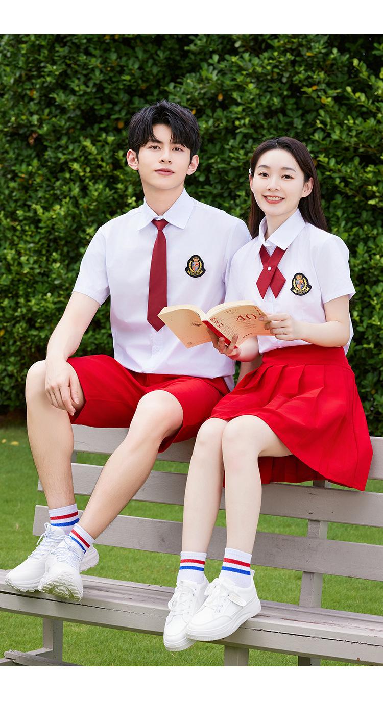 Men's two-piece white short-sleeved shirt red shorts white socks, [Women's two-piece set] pure white short-sle...