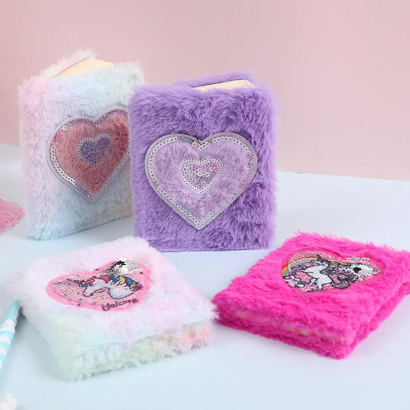 Cuaderno de Felpa de Unicornio con Forma de Corazón de Venta Caliente Transfronteriza, Cuaderno de Dibujos Animados para Estudiantes, Libro para Escritura a Mano, Pequeño Regalo, Papel