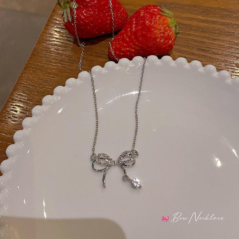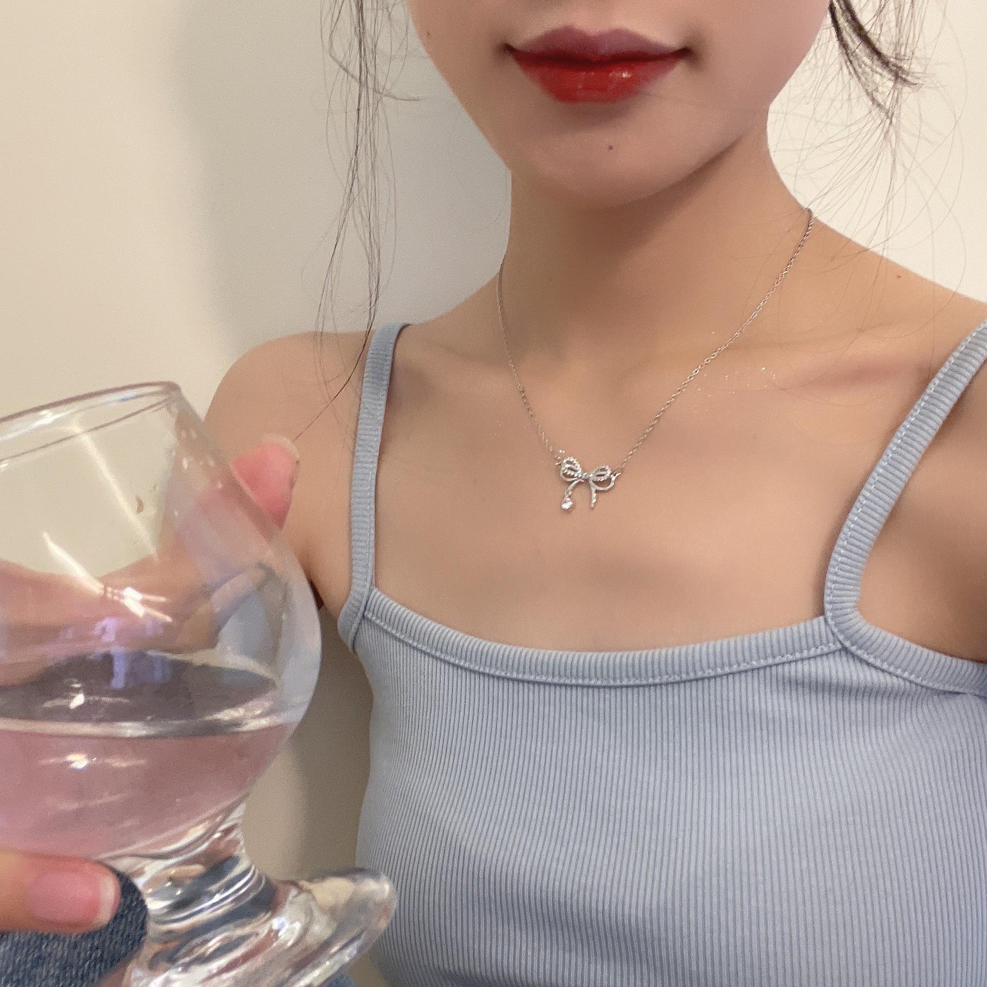 Collar con Colgante de Lazo Corazón de Niña Diamante Pequeño Fresco Cadena Clavícula Regalo Diseño Nicho Collar Versátil