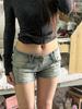 Shorts de mezclilla americanos desgastados con remaches para mujer Verano 2024 Nuevo Cintura alta Sueltos Pierna ancha Línea A Sexy Hot Pants