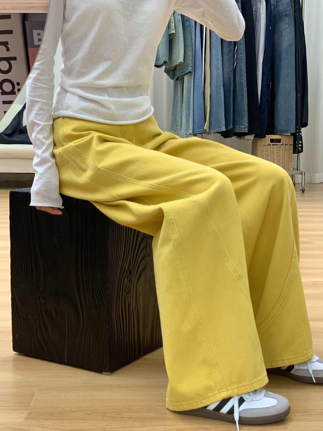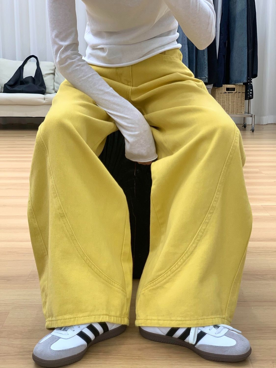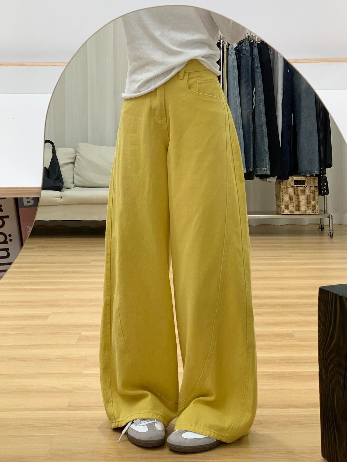 Jeans Amarillos de Pierna Ancha y Cintura Alta Estilo Americano para Mujer 2024 Otoño Nuevo Pantalones Rectos Holgados Adelgazantes