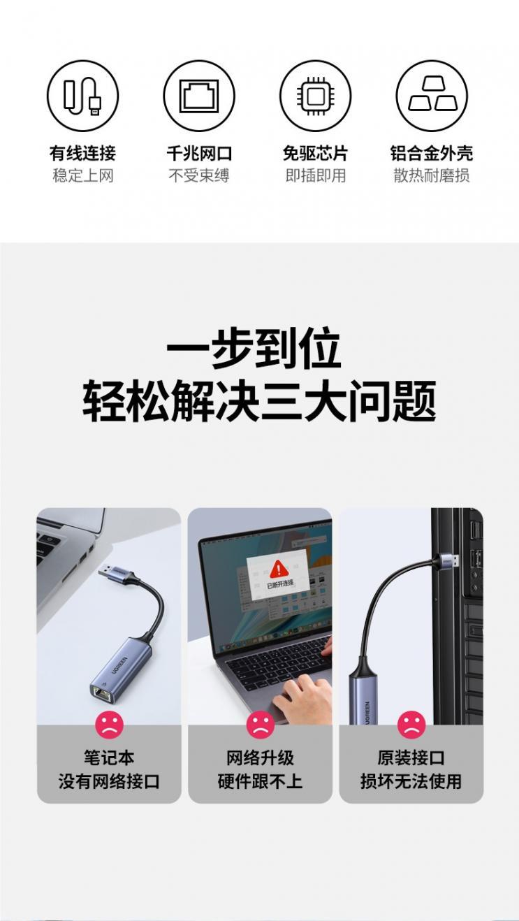 Gigabit ethernet port + usb3.0*3-aluminum shell braid-20915