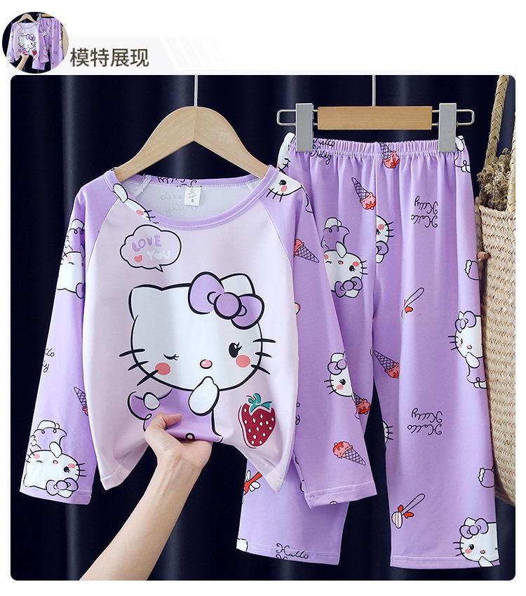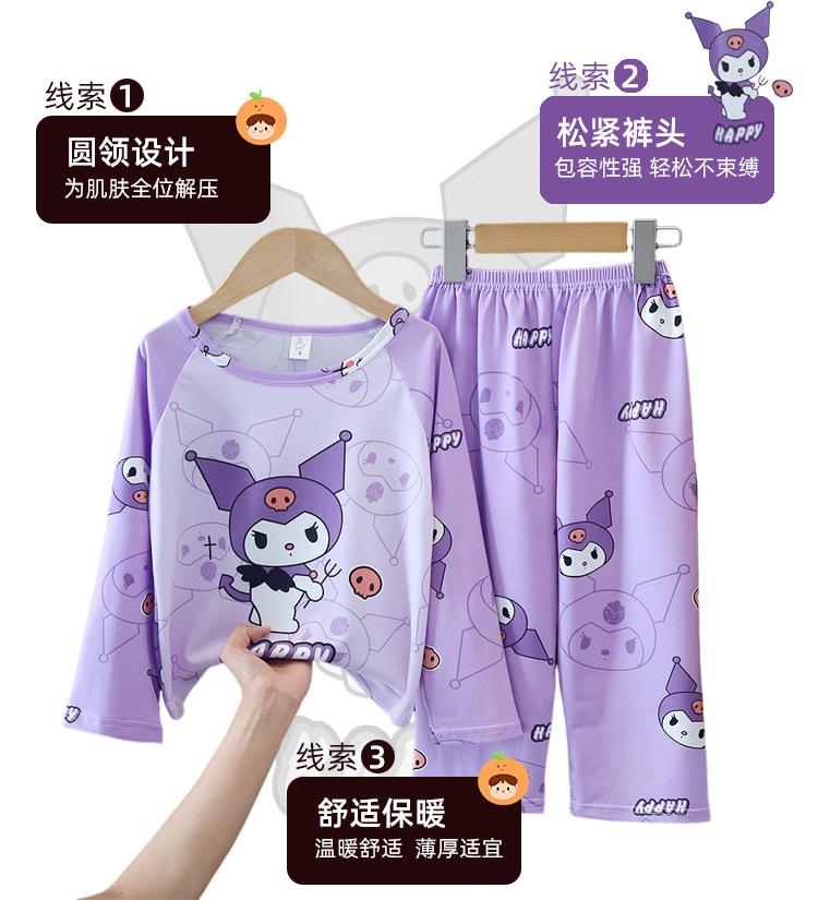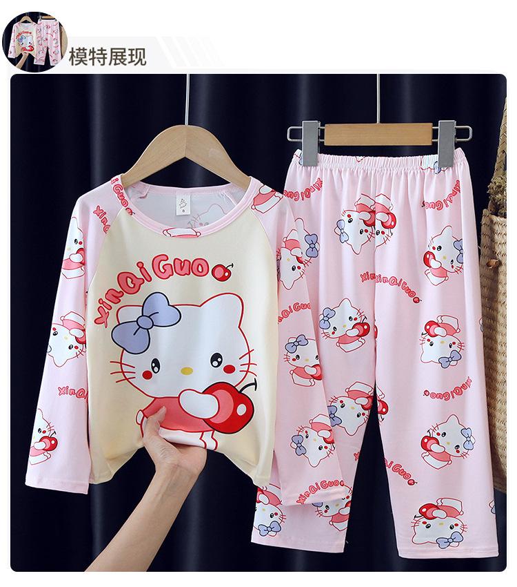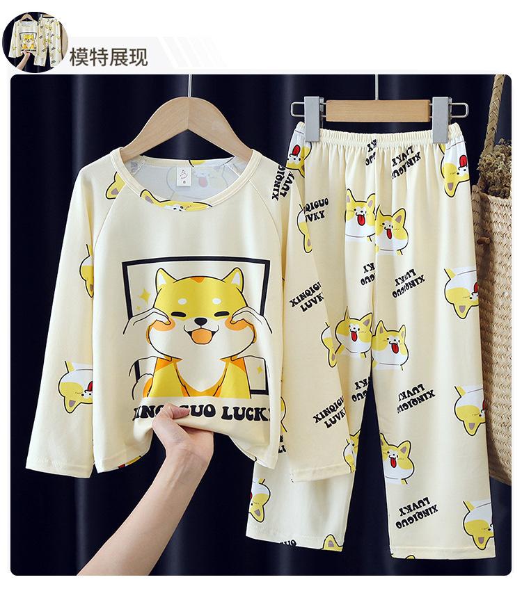 Pijama para niños para niñas fino de manga larga con cuello redondo traje primavera y otoño para niños medianos y grandes ropa para el hogar ropa de verano para aire acondicionado