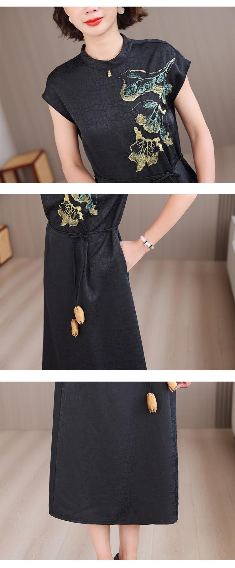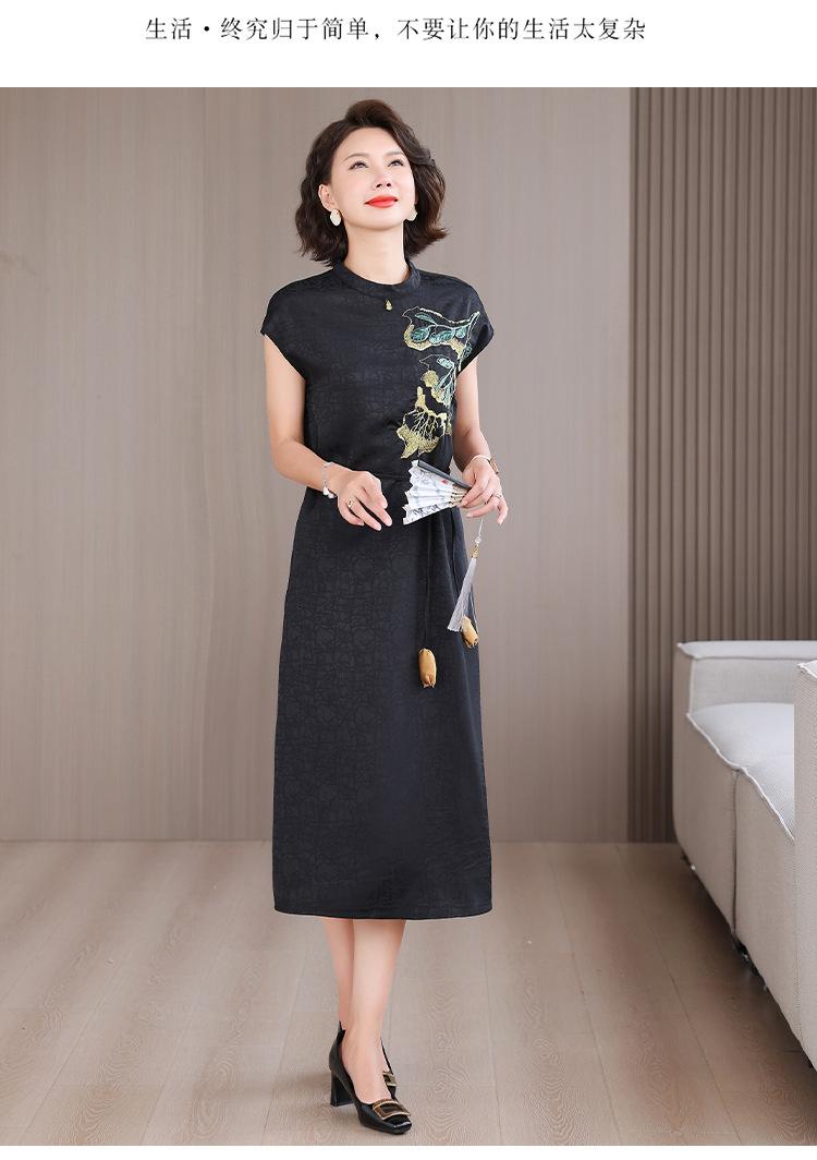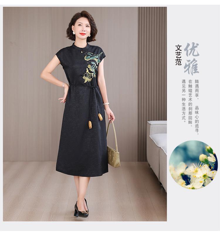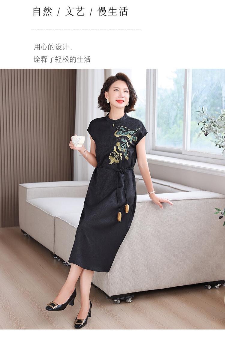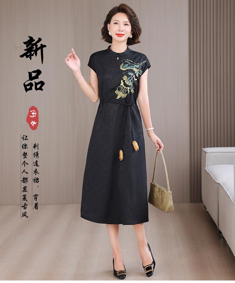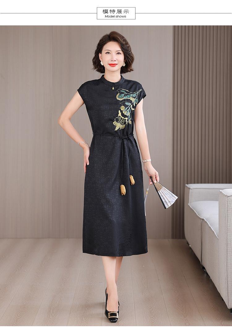 Vestido de Seda de Morera Bordado con Craquelado de Tortuga de Alta Calidad para Mujeres de Mediana Edad que Reduce la Edad Xia Xin Estilo Chino Seda Cheongsam Mejorado