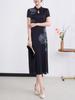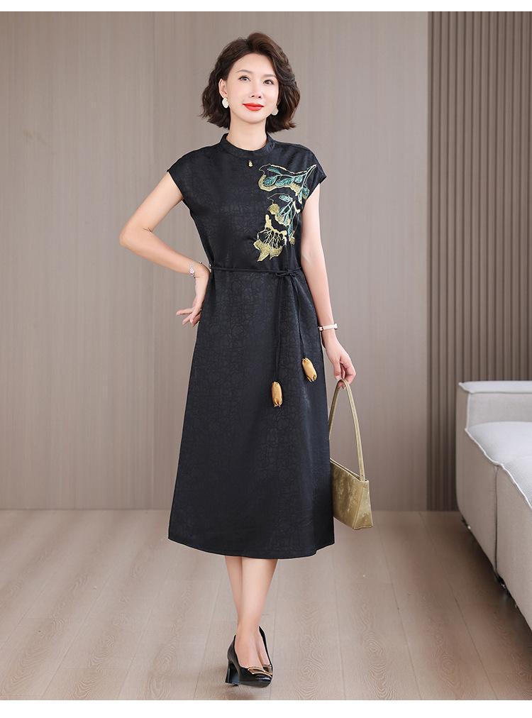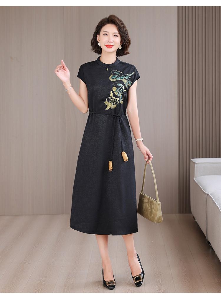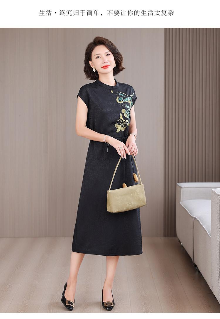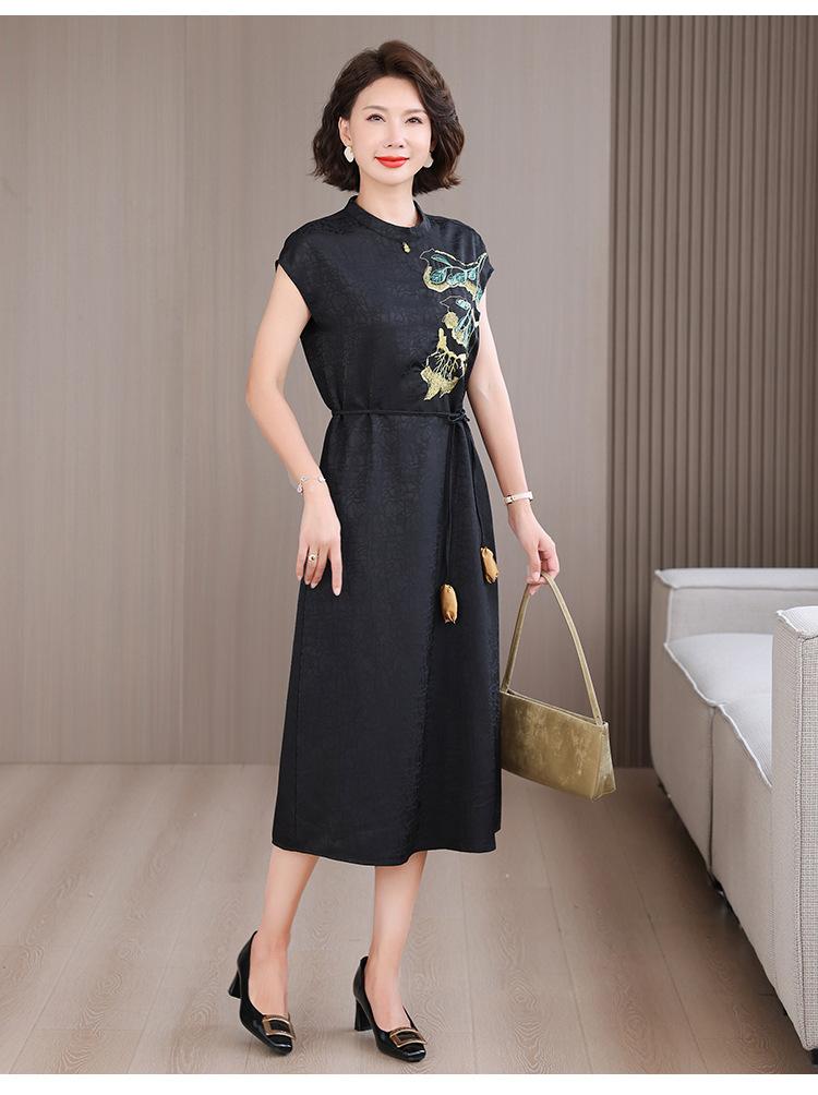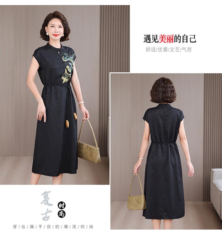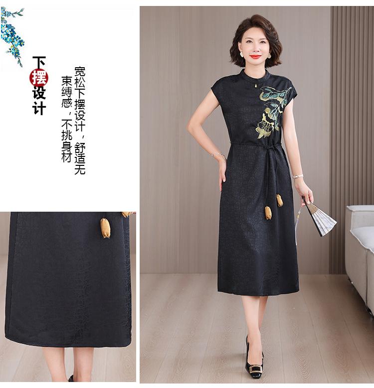 Vestido de Seda de Morera Bordado con Craquelado de Tortuga de Alta Calidad para Mujeres de Mediana Edad que Reduce la Edad Xia Xin Estilo Chino Seda Cheongsam Mejorado