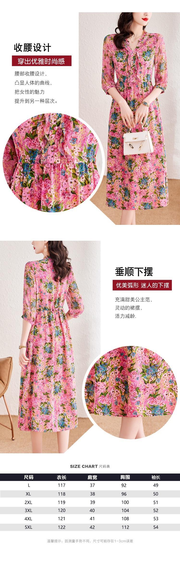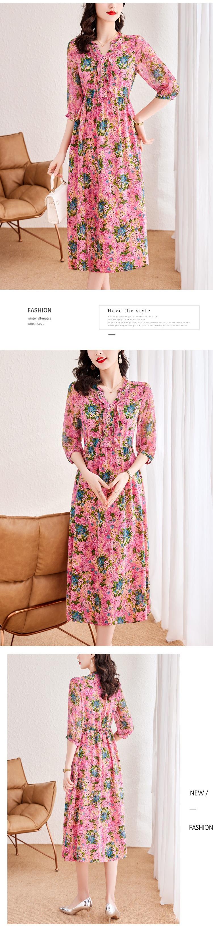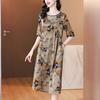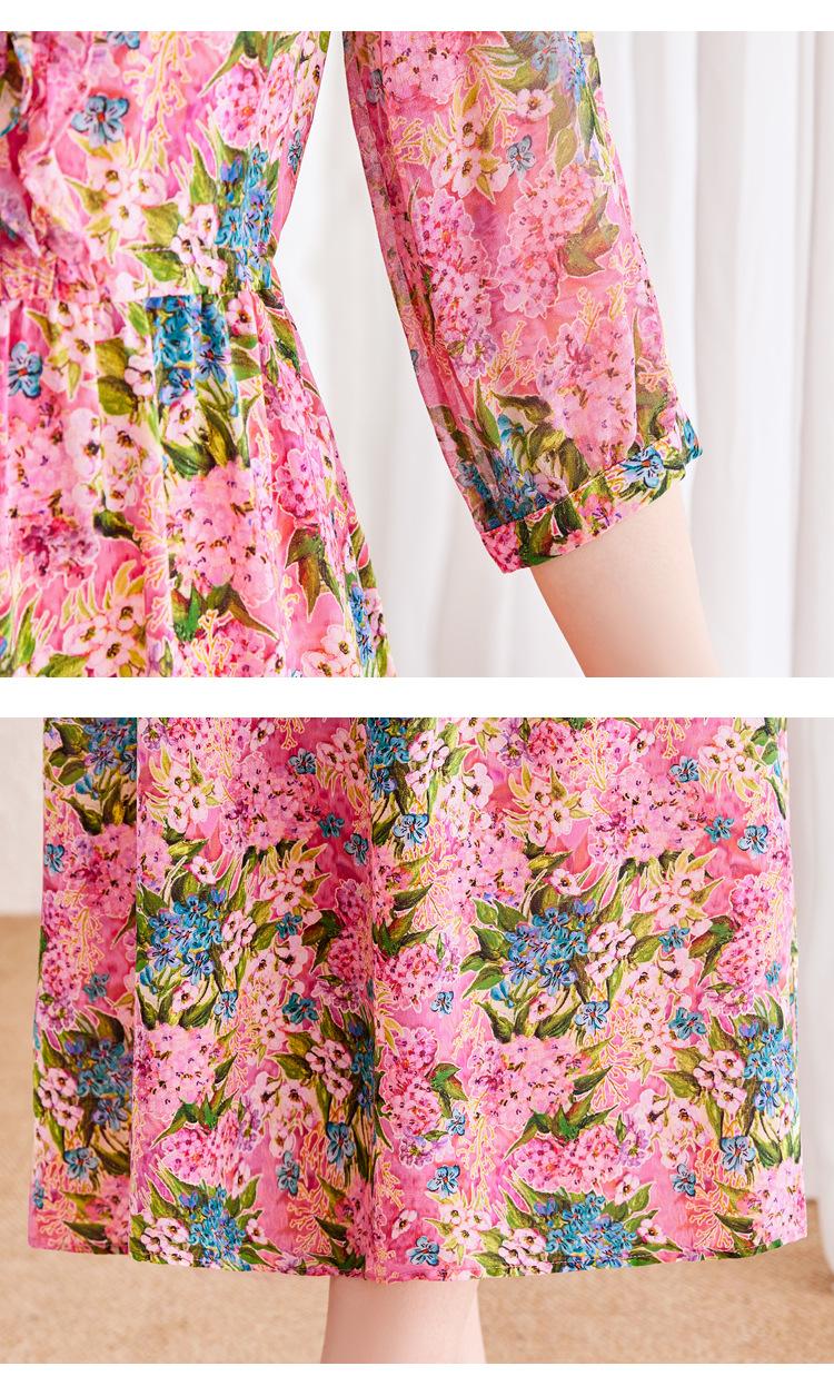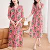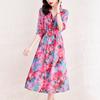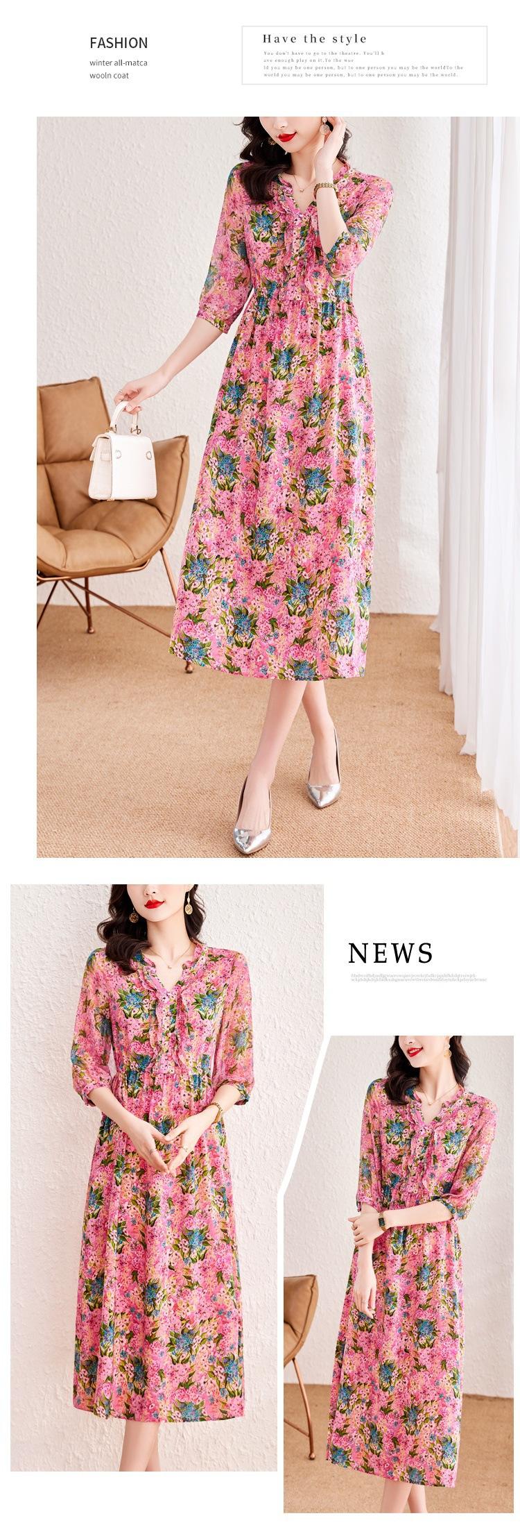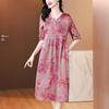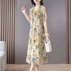 Vestido de Seda de Morera Vintage de Alta Calidad Talla Grande Cubre Vientre Madre Verano Elegante Adelgazante Vacaciones Vestido de Seda Floral
