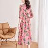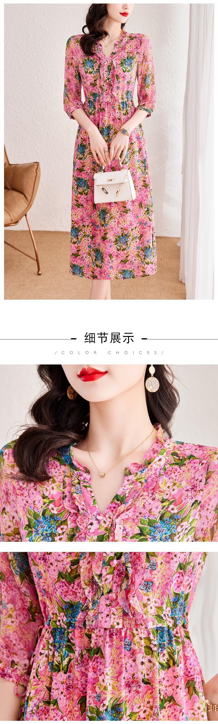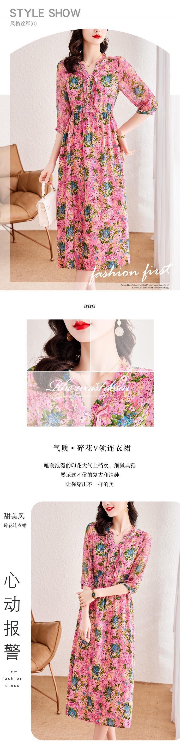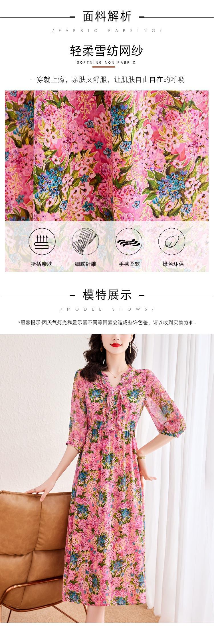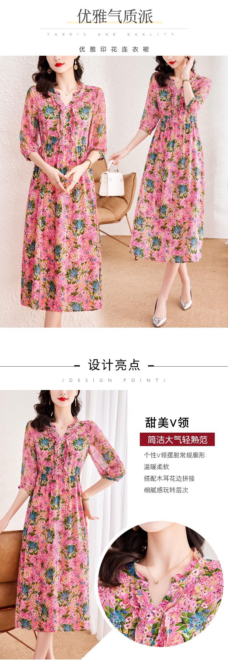 Vestido de Seda de Morera Vintage de Alta Calidad Talla Grande Cubre Vientre Madre Verano Elegante Adelgazante Vacaciones Vestido de Seda Floral