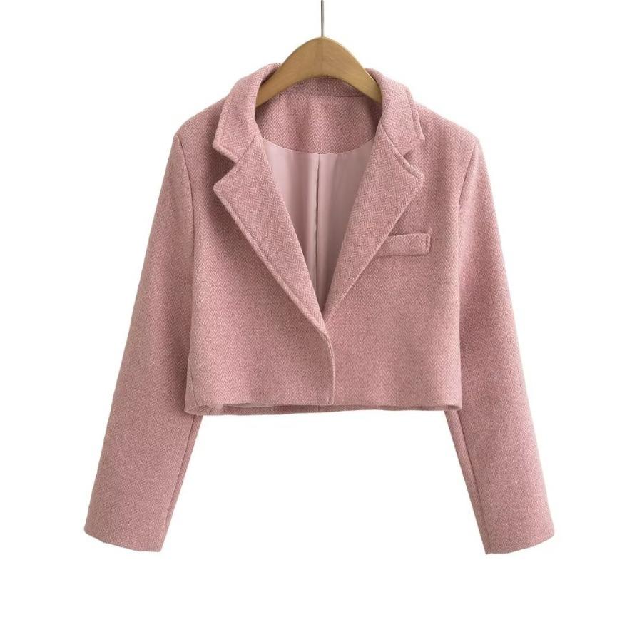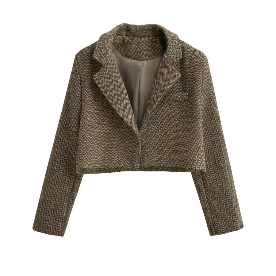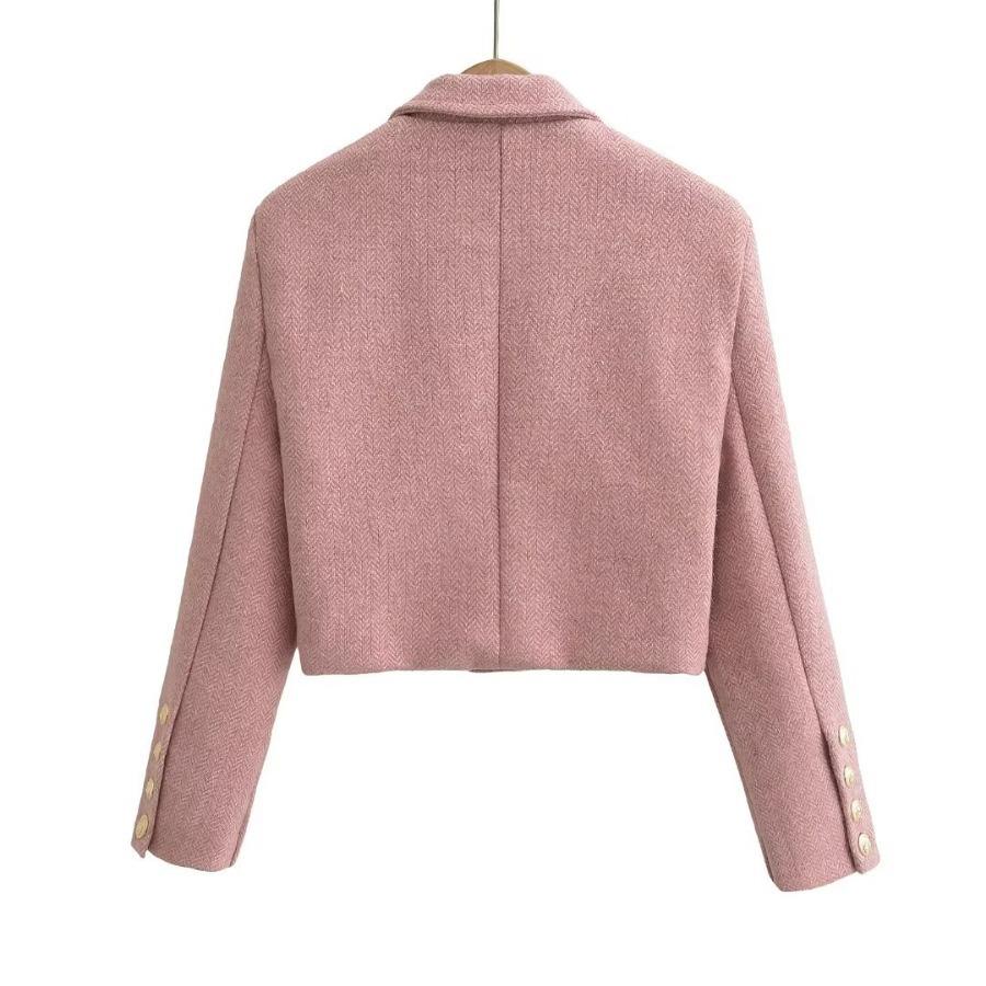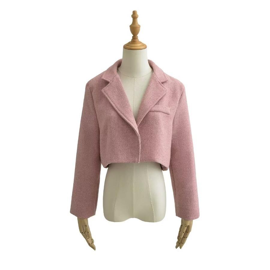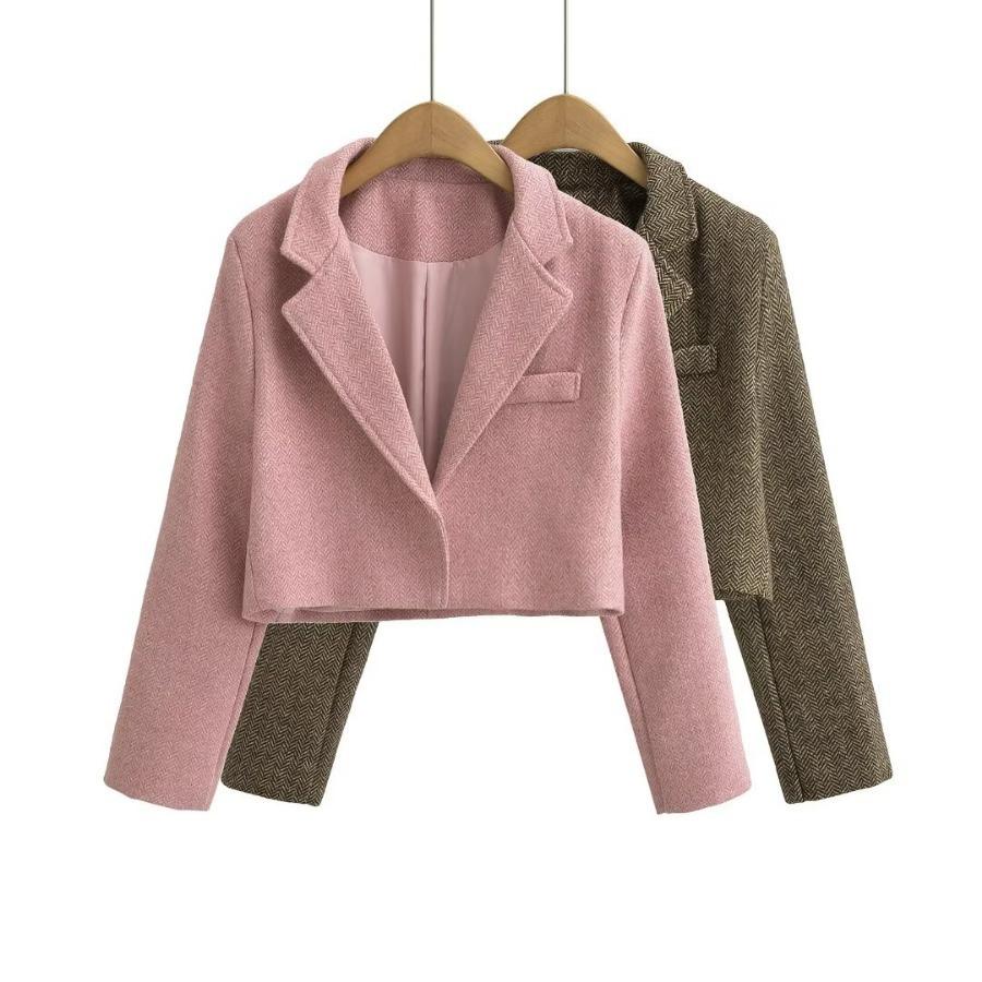 Estilo Europeo y Americano Chica Caliente Retro Solapa Manga Larga Chaqueta Corta Top de Traje Versátil de Nuevo Estilo para Otoño e Invierno para Mujer